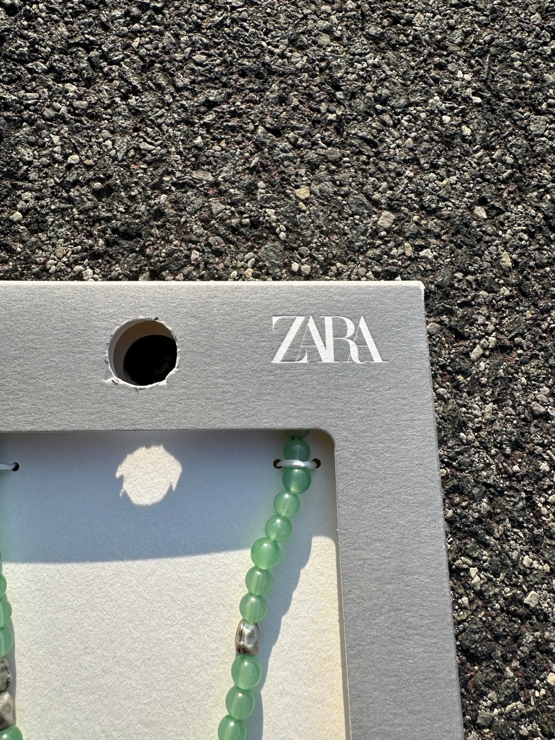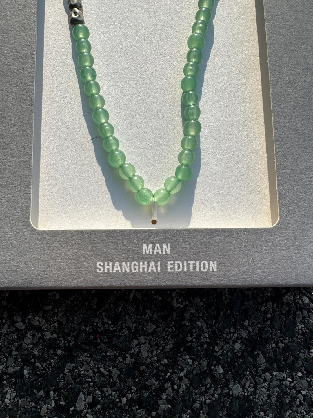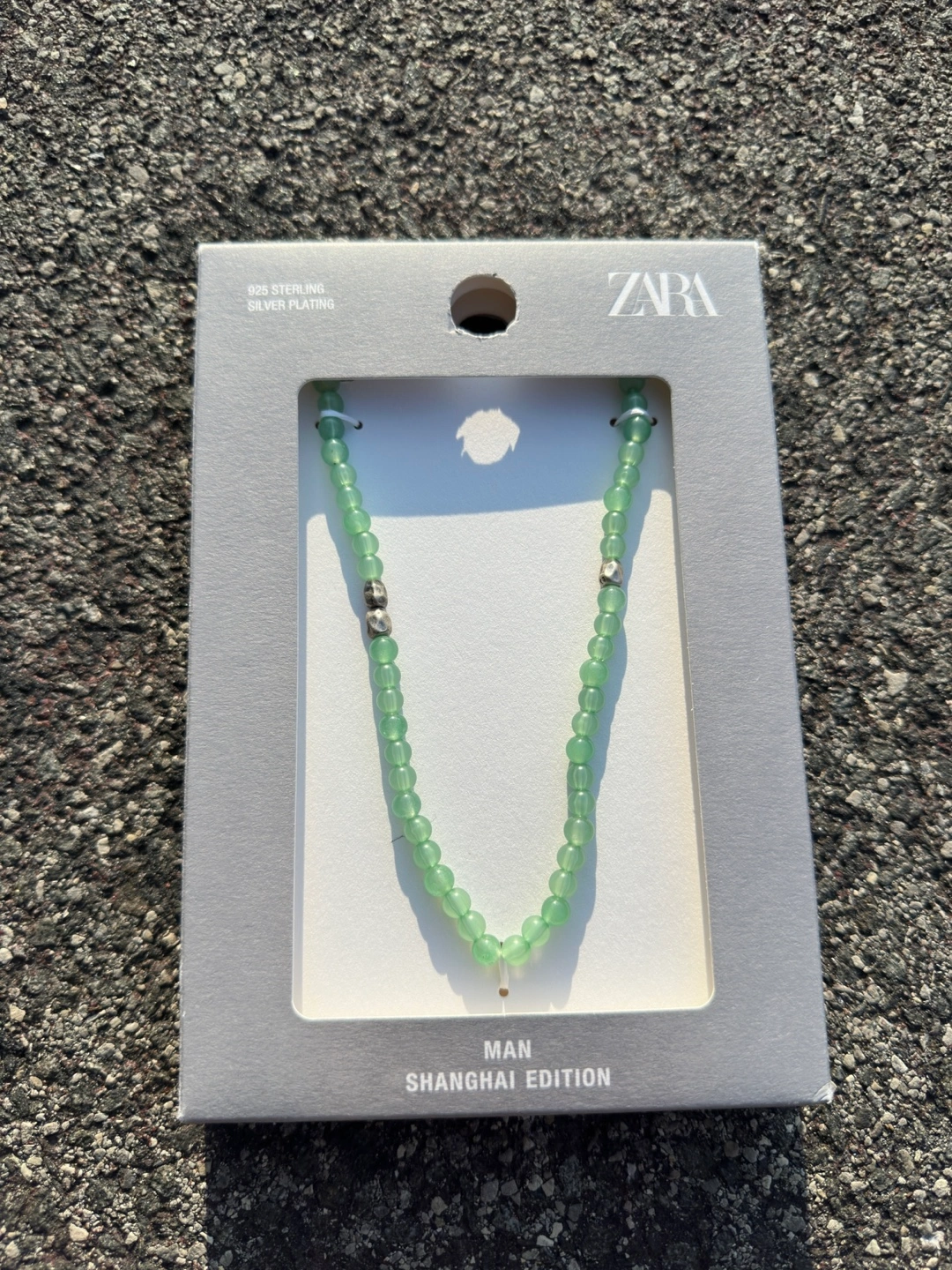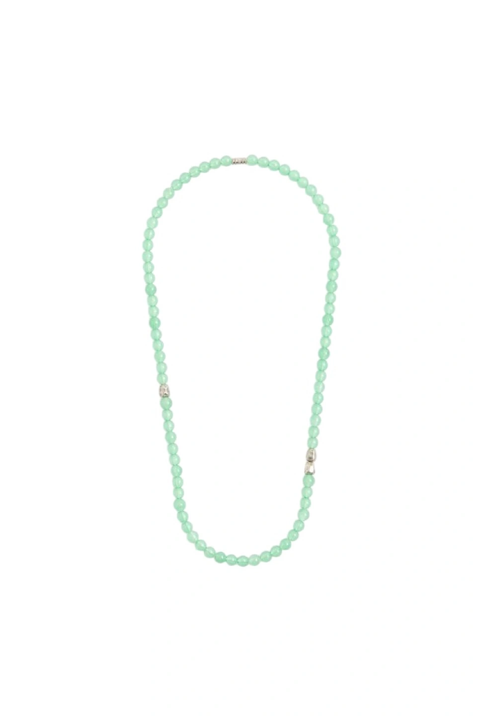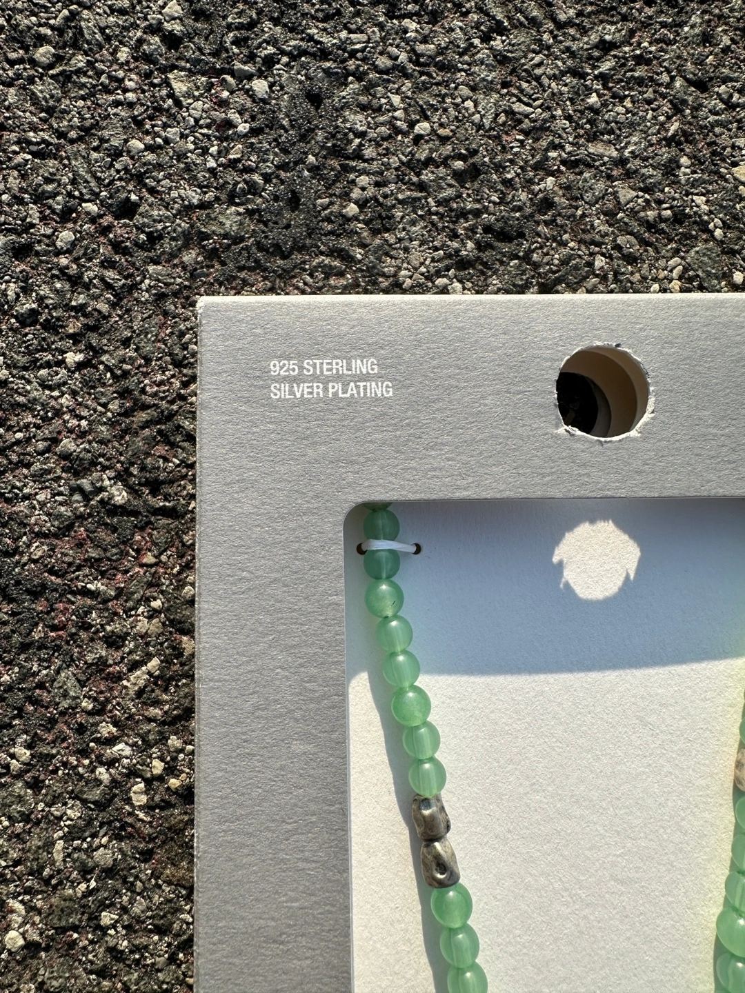 411Green beaded necklace. Silver accents. 925 sterling silver plating. New with tags.