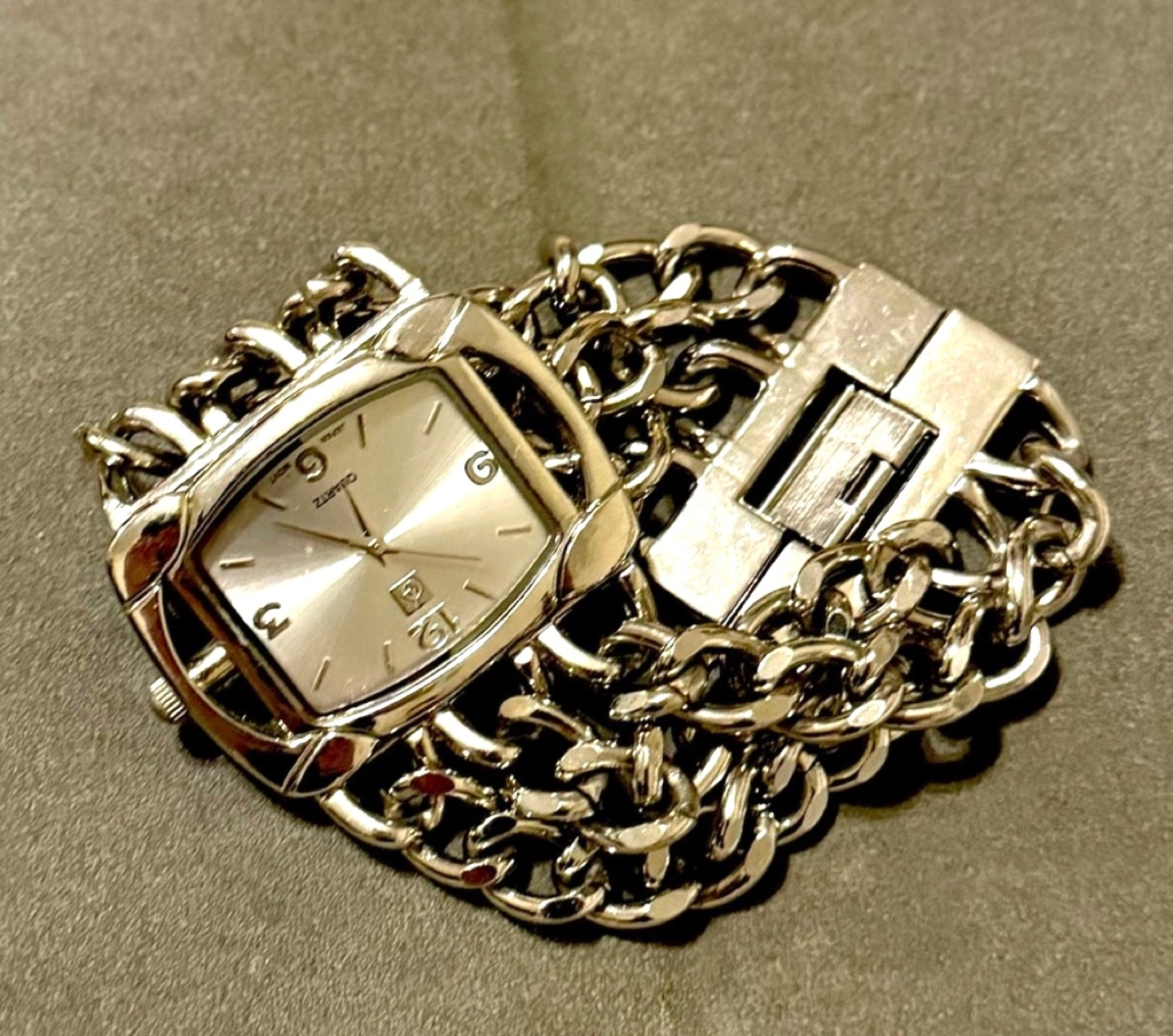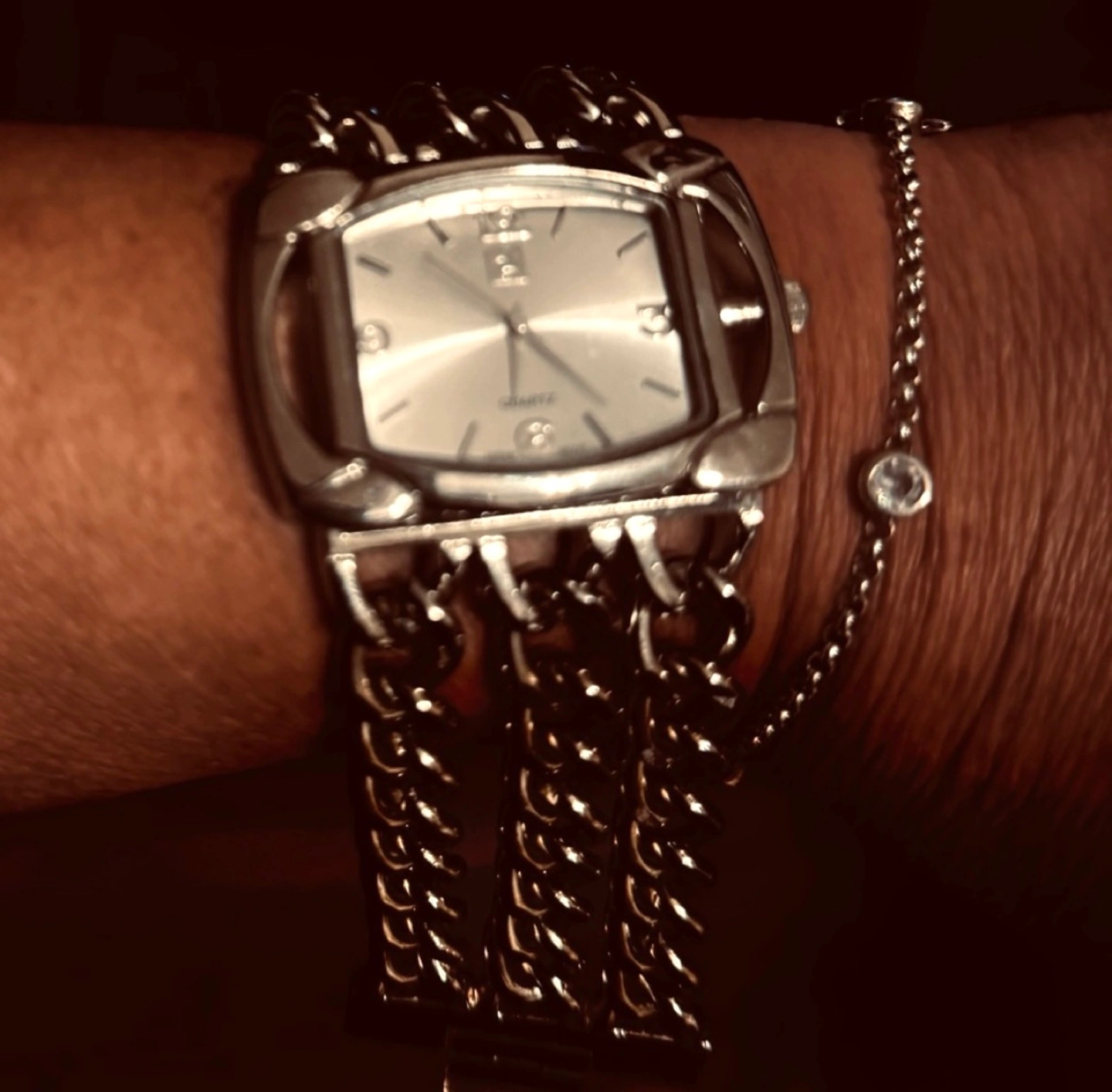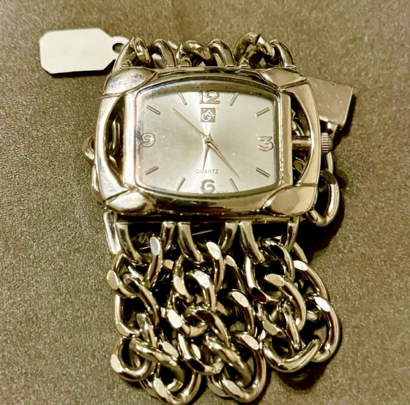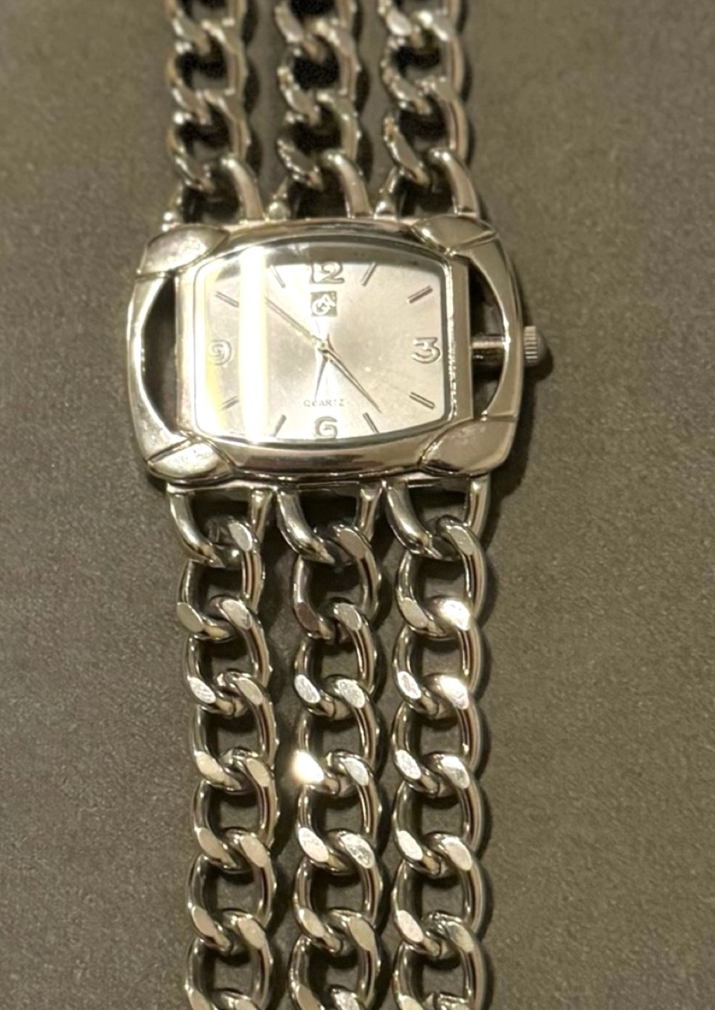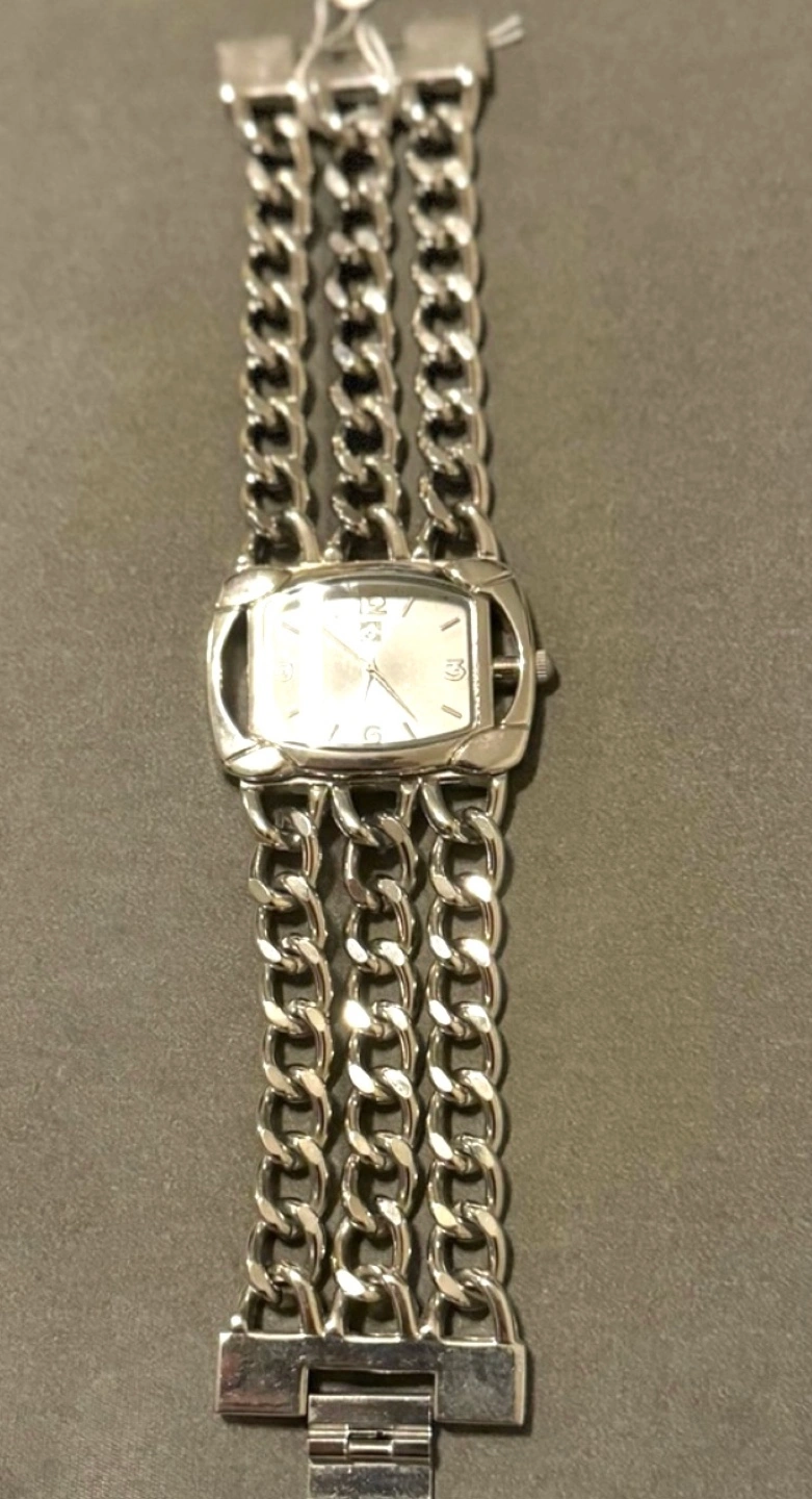 Collectors Rare find vintage antique Silver tone watch. Square face. Quartz movement. Antique Vintage Multi-chain Wrist Watch by Italian Designer Sterling Silver Excellent Condition Private Collection Really Rare Find π Pre-owned.