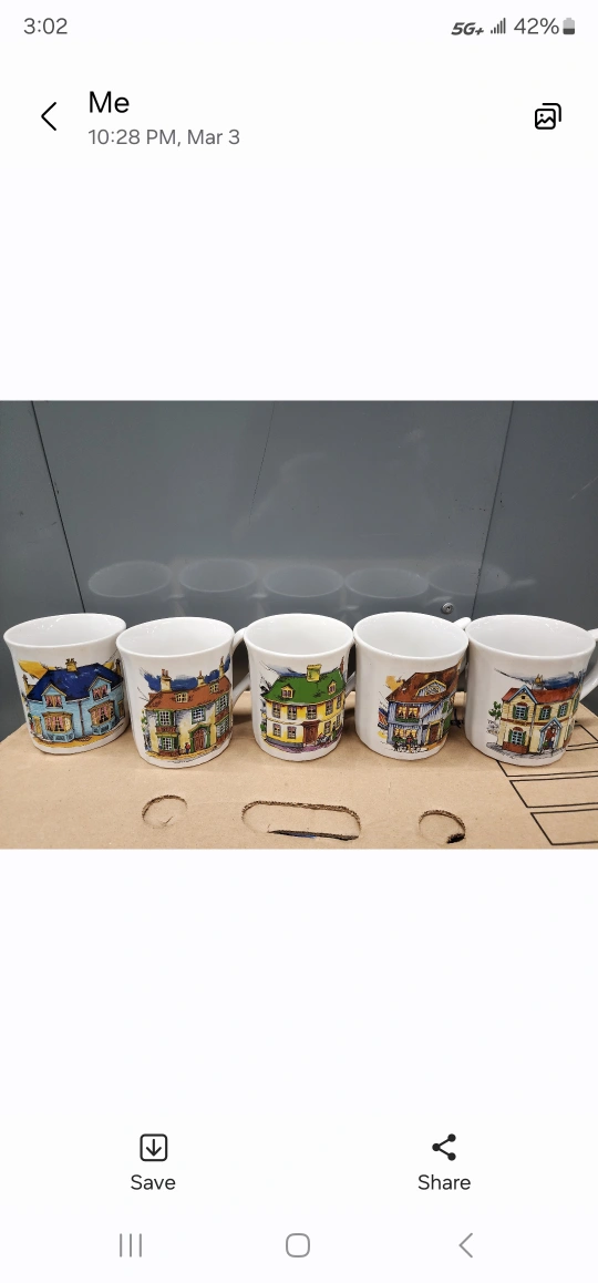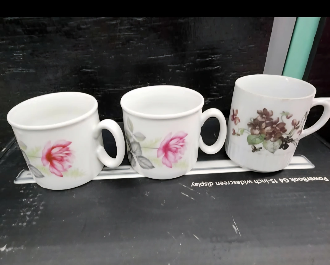 Various designs and styles. Includes floral, Paris scene, and houses. Some mugs and some teacups with saucers. Great for coffee, tea, or hot chocolate.