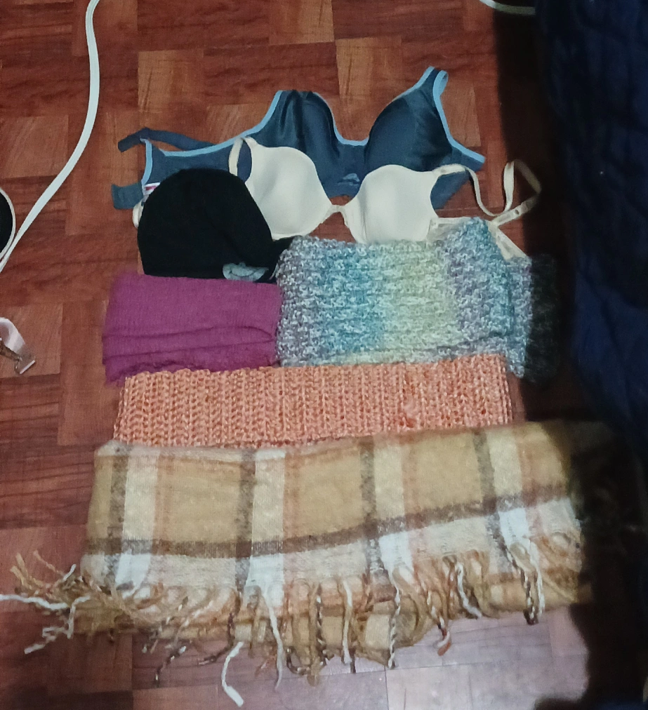 1000+Bra, hat, and scarves. Perfect for layering during cold weather. Various colors and textures. Good condition. Braziers:US 34C #freecycle I'm giving this purchase, because i don't need it