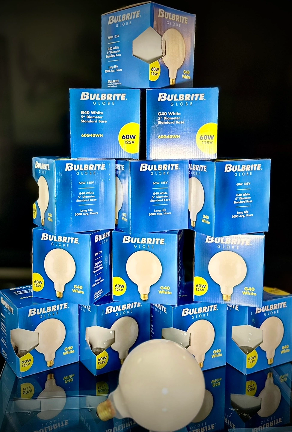 Ten new Bulbrite Globe G40 60W 125V white light bulbs. Standard base. Long life. Perfect for various lighting applications.