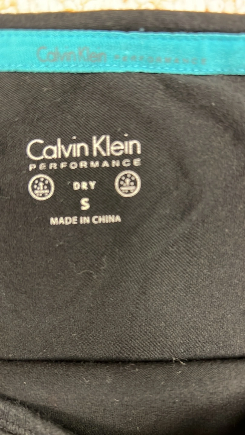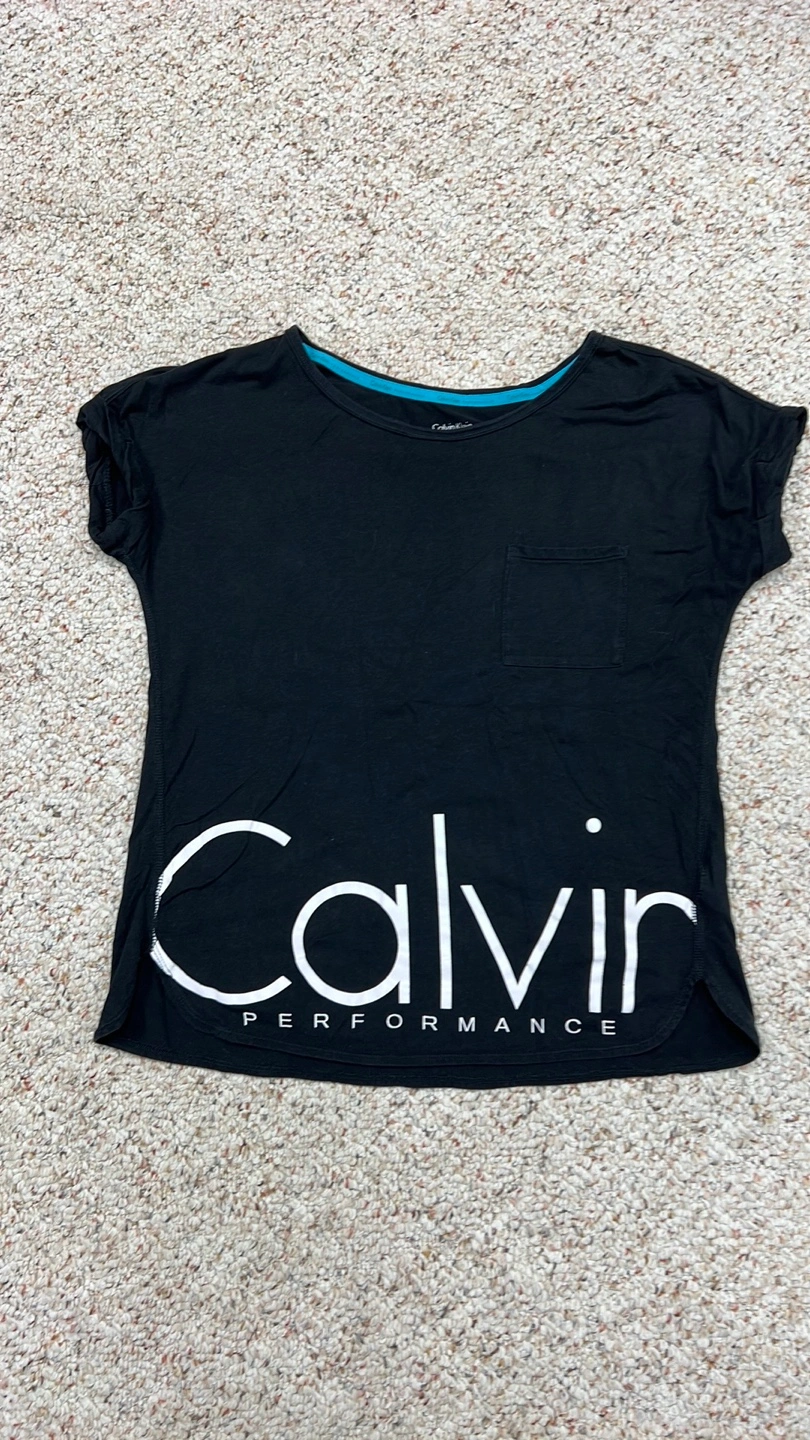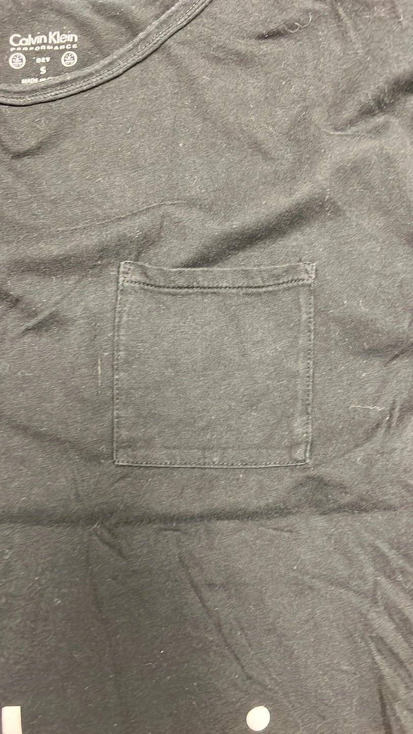 18Black Calvin Klein Performance t-shirt. Size small. Features a small pocket and curved hem. Short sleeves.