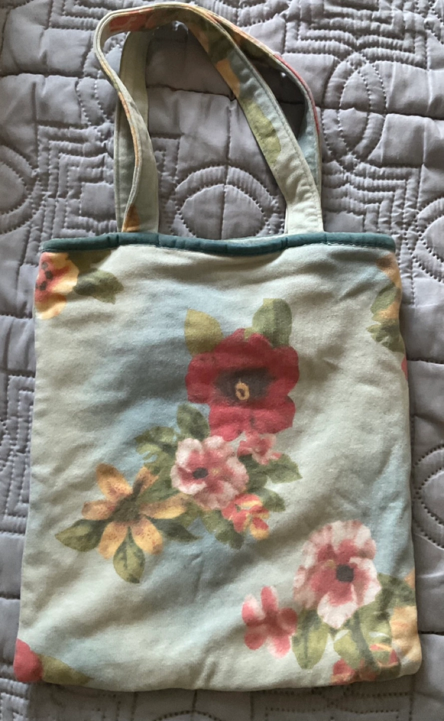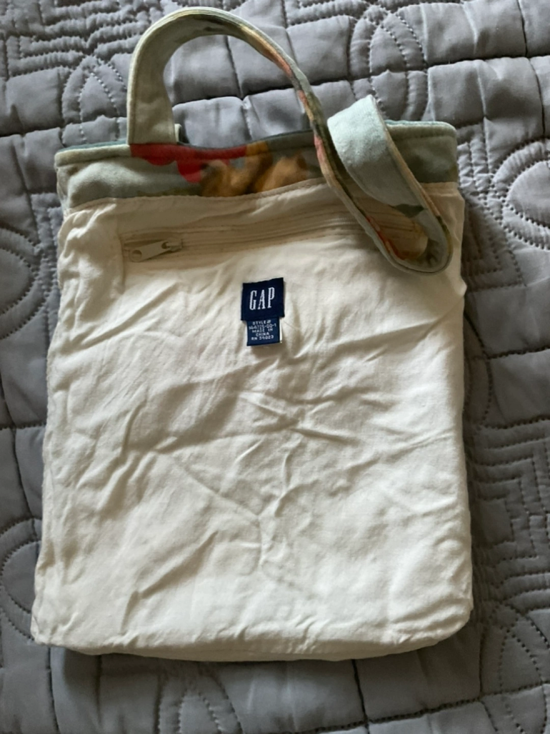 Gap vintage Cute floral tote bag. Small size, perfect for everyday use. Features a zipper closure and two tote handles. The bag is made of a soft material. Flower decor with small stones