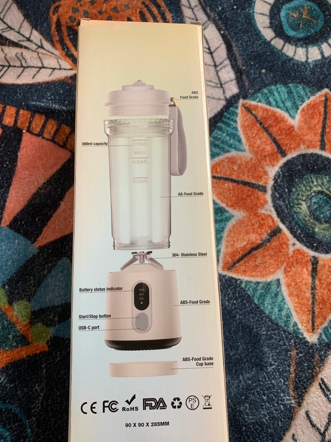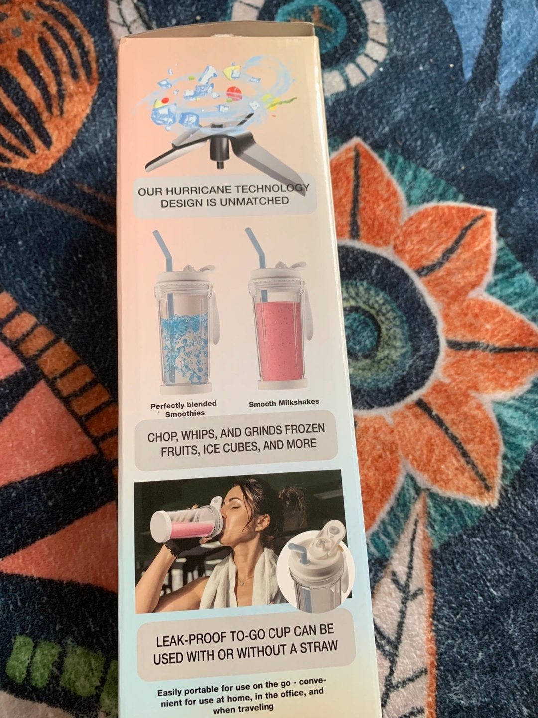 275500ml capacity. USB-C rechargeable. 300W rated power. Includes carrying strap. Chops, whips, and grinds frozen fruits, ice cubes, and more. Leak-proof to-go cup. Used with or without a straw.
