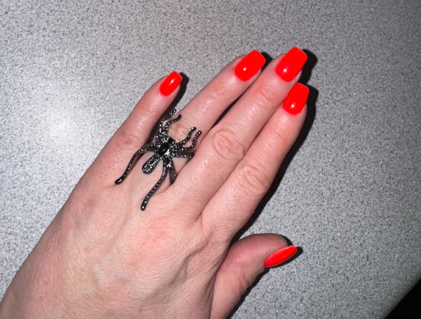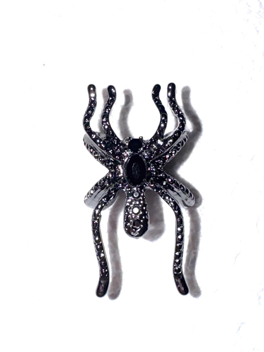 Unique spider ring. Gunmetal black finish. Small rhinestones. Adjustable band. Perfect statement piece. One size.