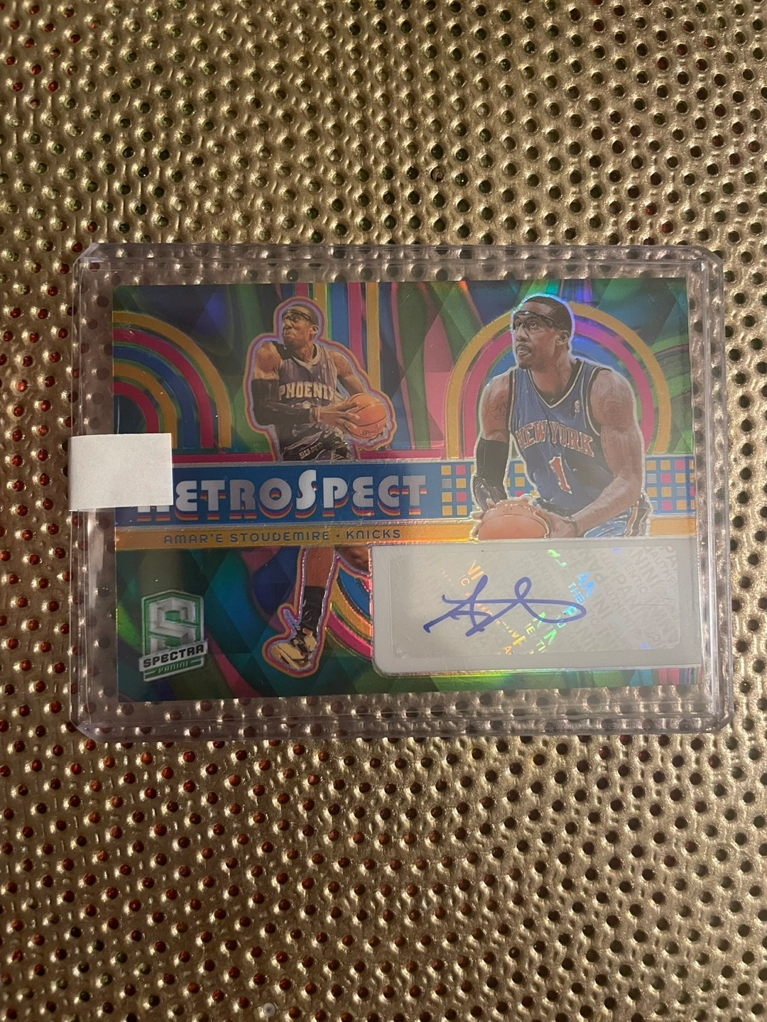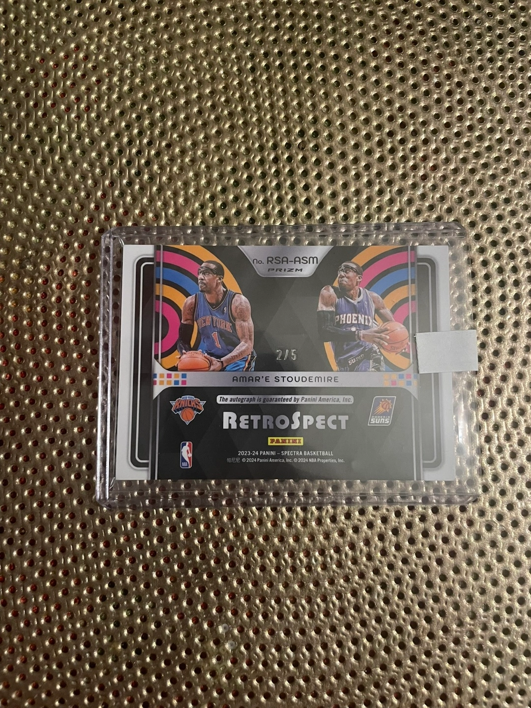 Autographed basketball card. Amare Stoudemire. Retrospect Prizm parallel. Numbered 2/5. In a protective case.