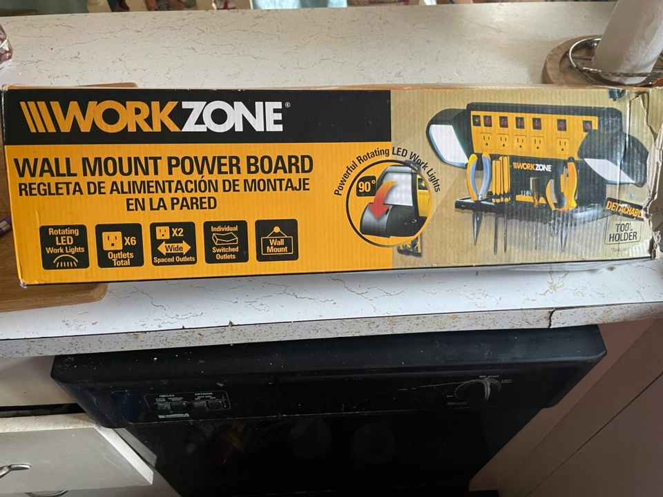 13390 powerful rotating LED work lights, 6 outlets, wall mount, detachable tool holder