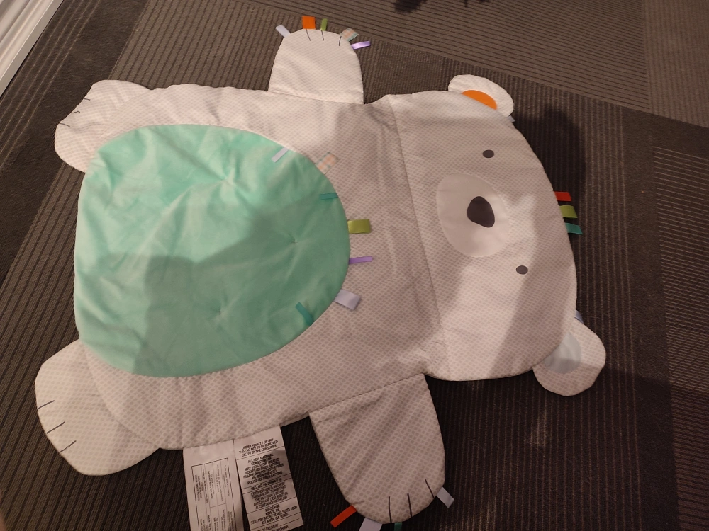 Baby tummy time playmat shaped like a bear. Soft, padded surface. Doesn't include any toys or attachments, mat only. Pickup only near Dupont and Lansdowne intersection
