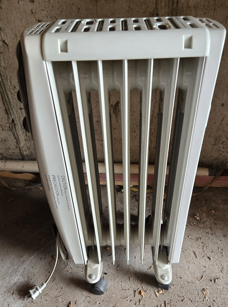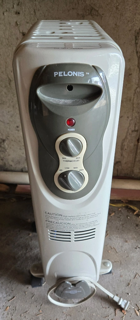 15Electric oil-filled radiator heater. Multiple heat settings. Wheels for easy mobility. Good for small to medium spaces.