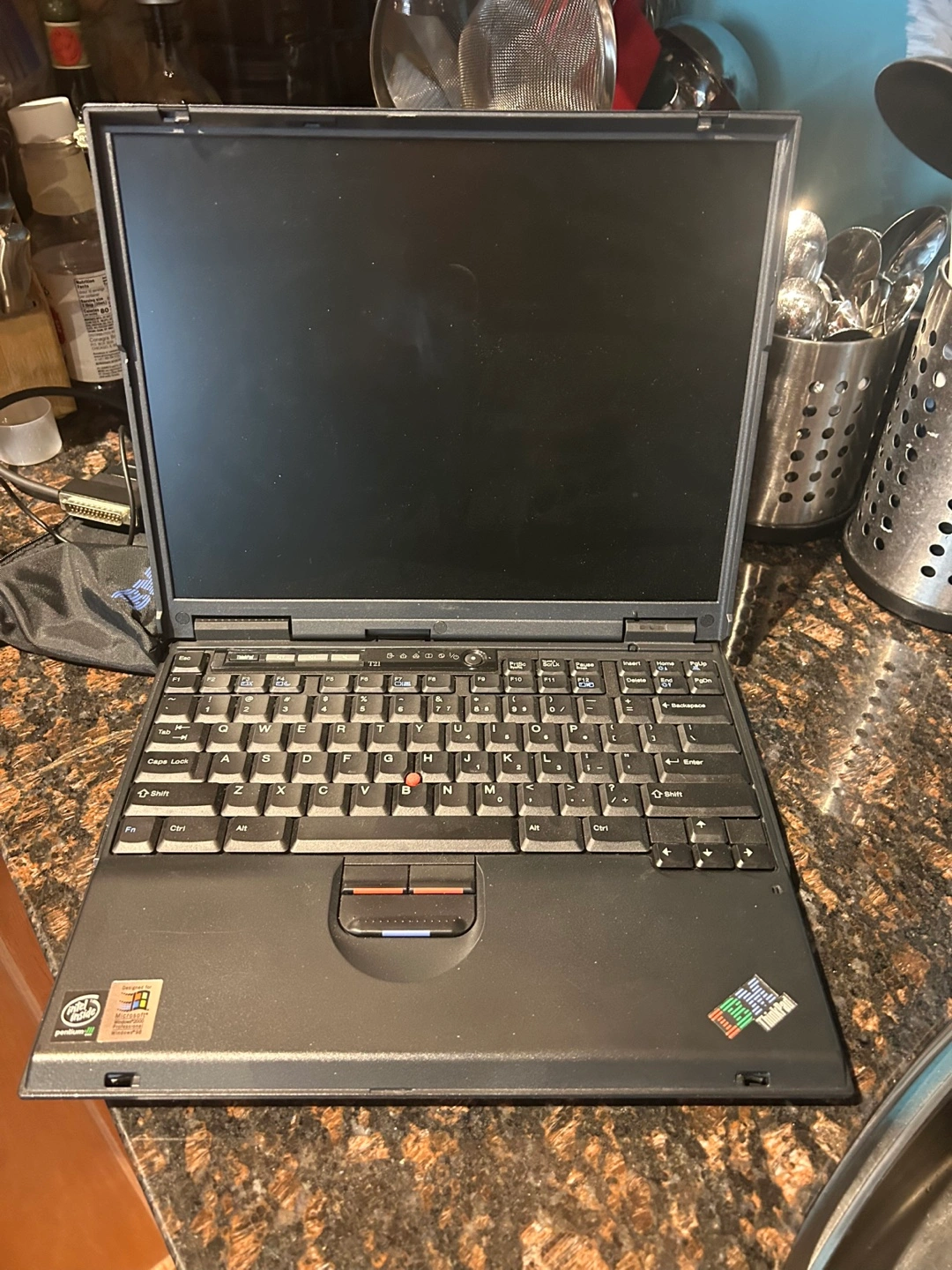 172Old IBM ThinkPad laptop. Model T20. Pentium III processor. 120MB RAM. Includes carrying case and lots of accessories. Windows 98/2000 compatible. Sold as-is. $20 cash. South loop.