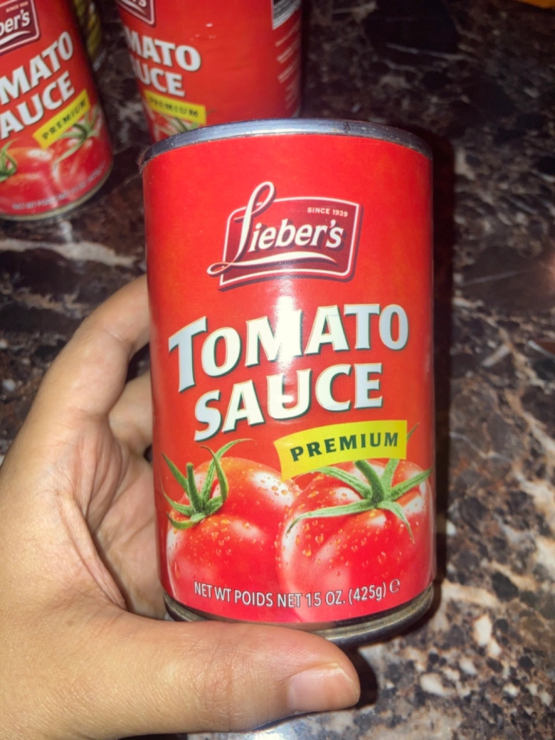 can of Lieber's Premium Tomato Sauce. Net weight 15 oz (425g). Great for collectors or cooking