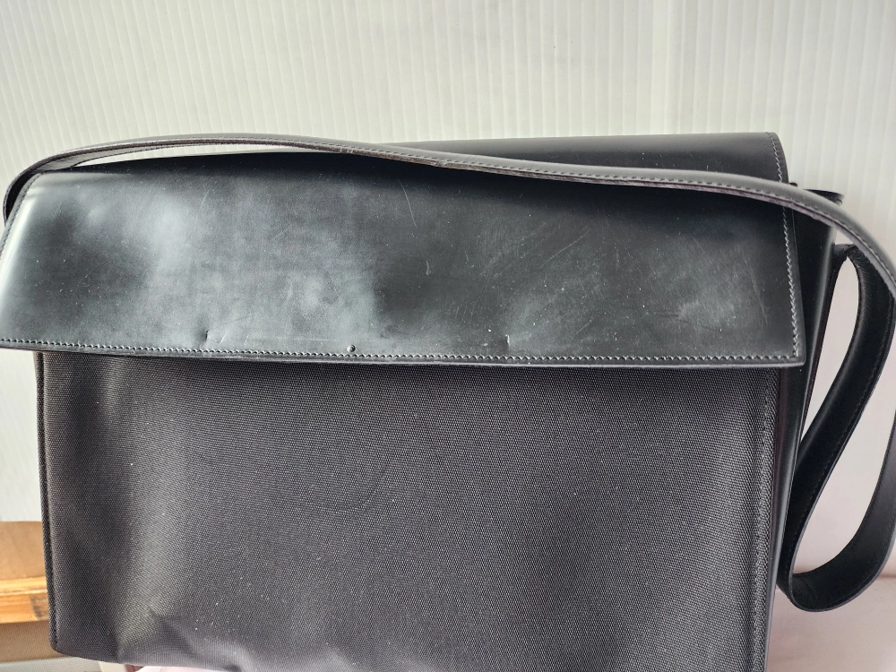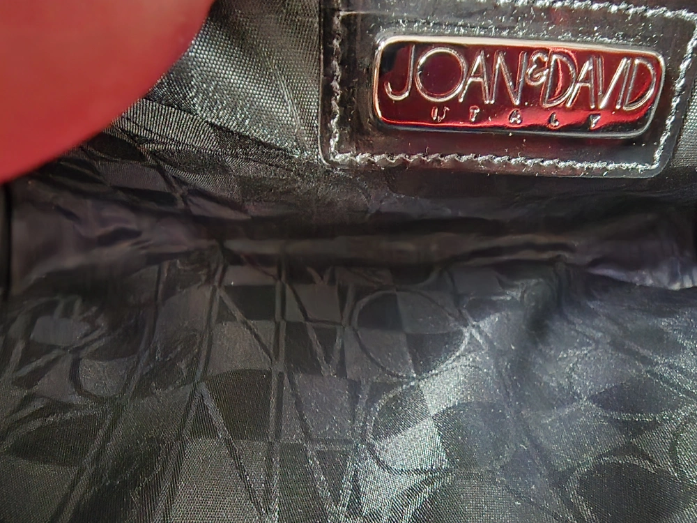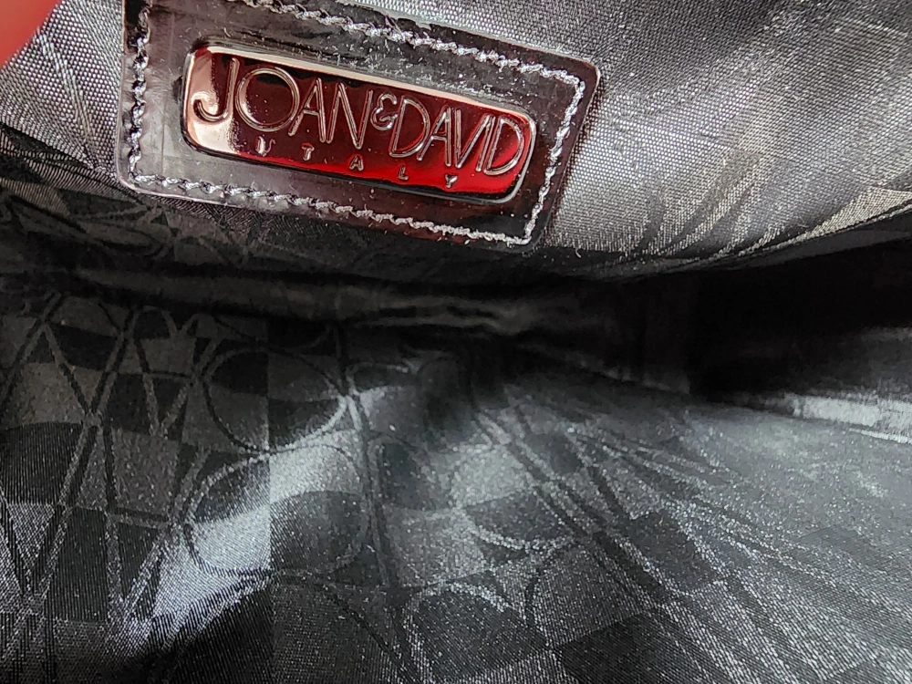 97Genuine JOAN & DAVID black Leather and Canvas Shoulder Bag Features a flap closure and adjustable shoulder strap. 12" x 10" Made in Italy. $135 BUYER HAS TO PICK UP CASH ONLY
