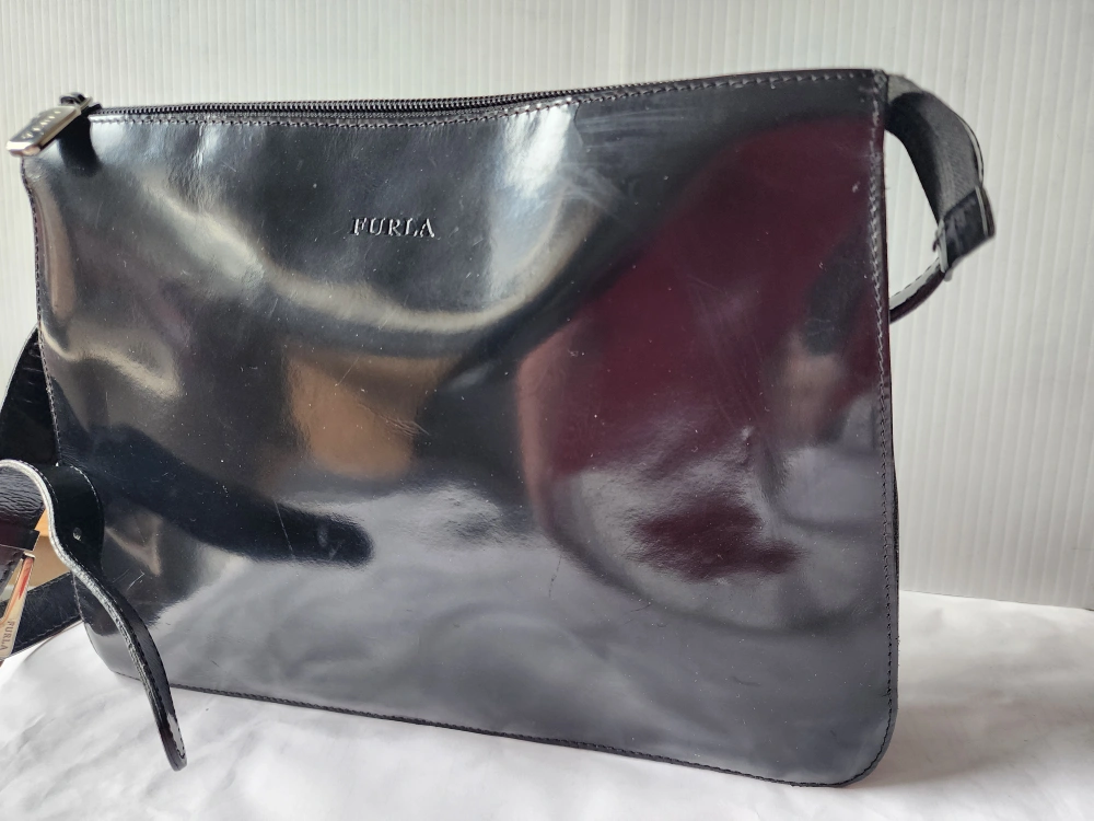 97FURLA black Leather Crossbody Bag vintage but new condition, never been used just collected Genuine FURLA crossbody bag. Black leather. Zipper closure. Adjustable strap. Made in Italy. 12" x 9" $85 BUYER HAS TO PICK UP CASH ONLY