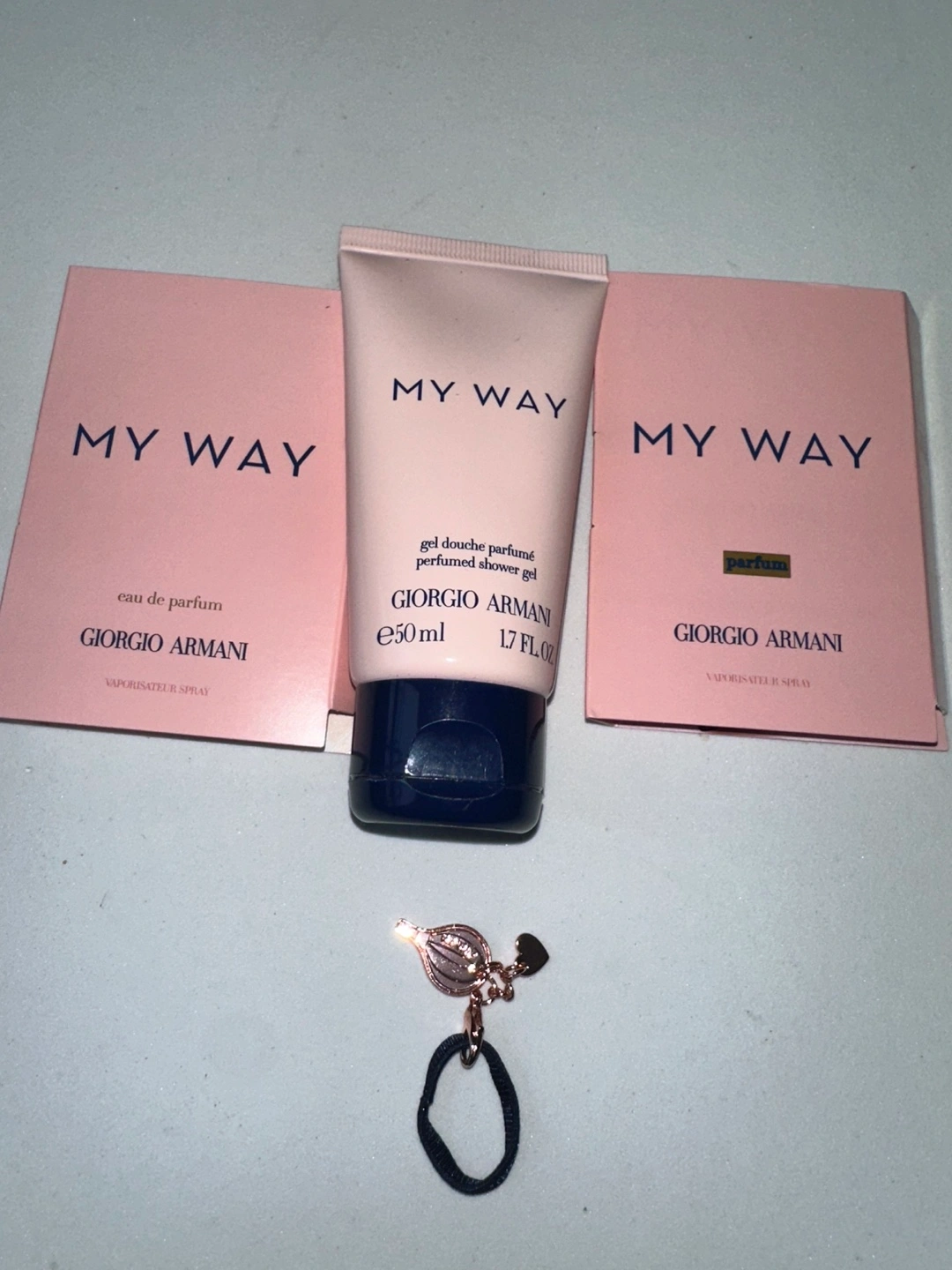 1000+New, never used Giorgio Armani My Way perfume gift set. Includes 2x sample perfume, shower gel, and a cute charm. Perfect gift!