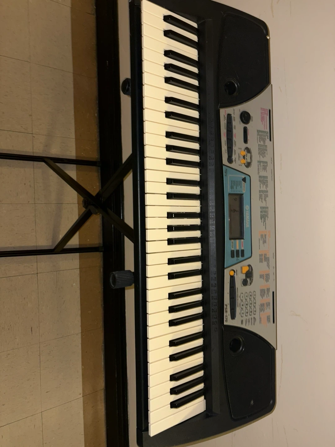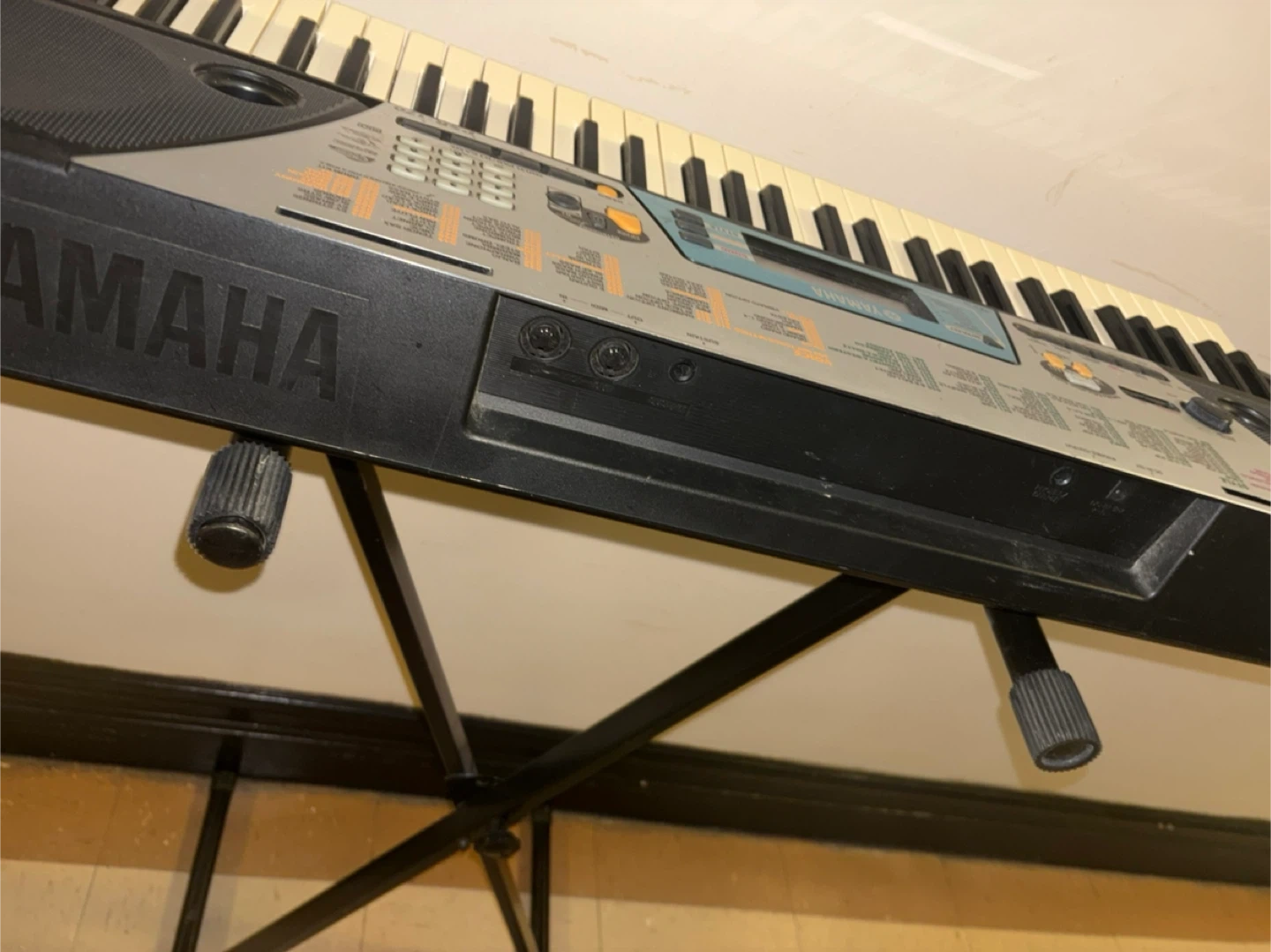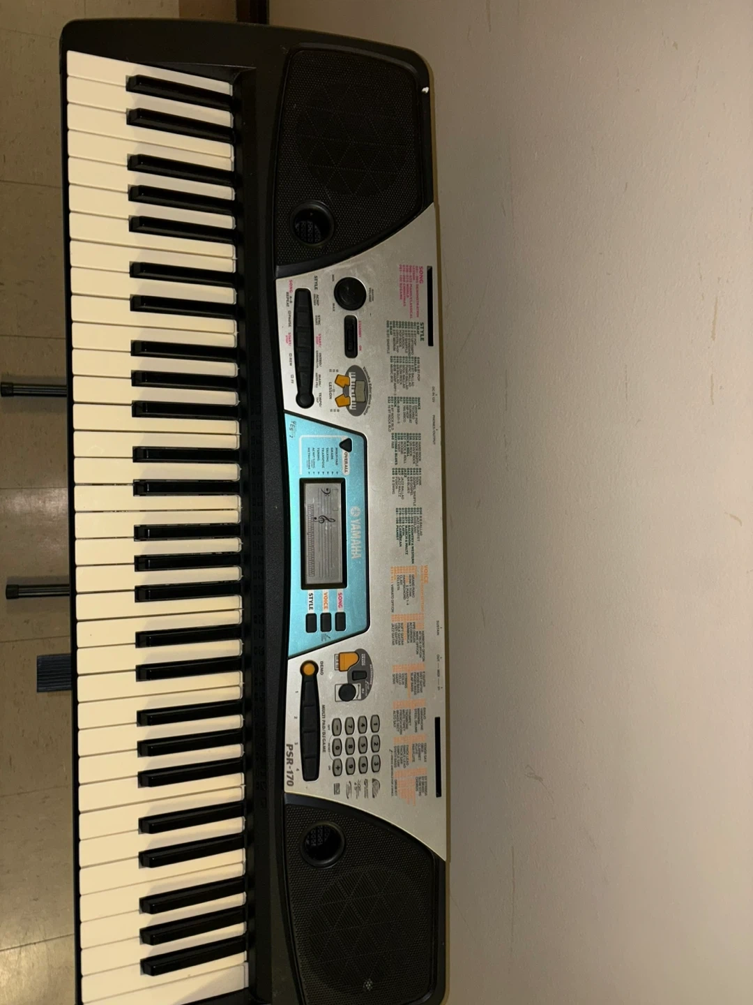This used Yamaha PSR-170 61-key keyboard is in excellent condition. It comes with a stand and can be operated electrically or by battery.
