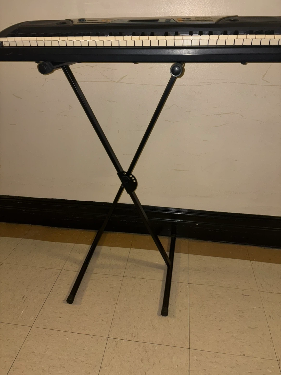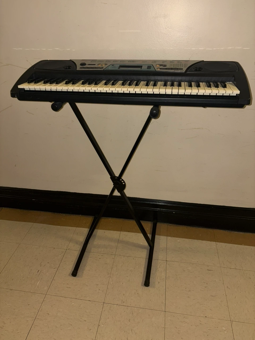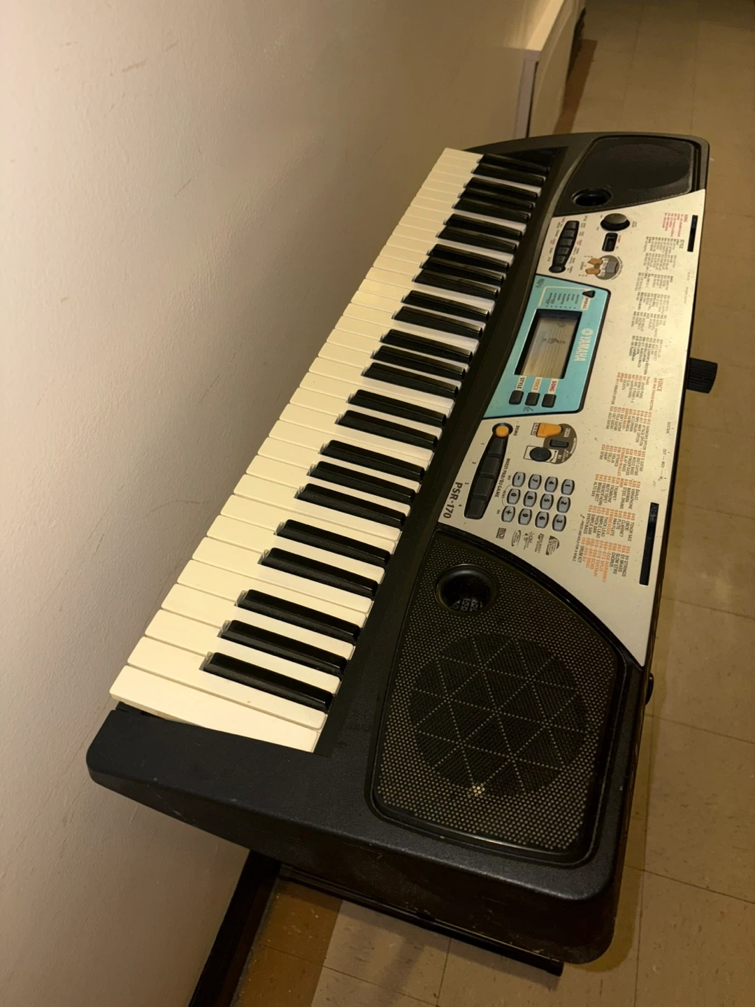This used Yamaha PSR-170 61-key keyboard is in excellent condition. It comes with a stand and can be operated electrically or by battery.