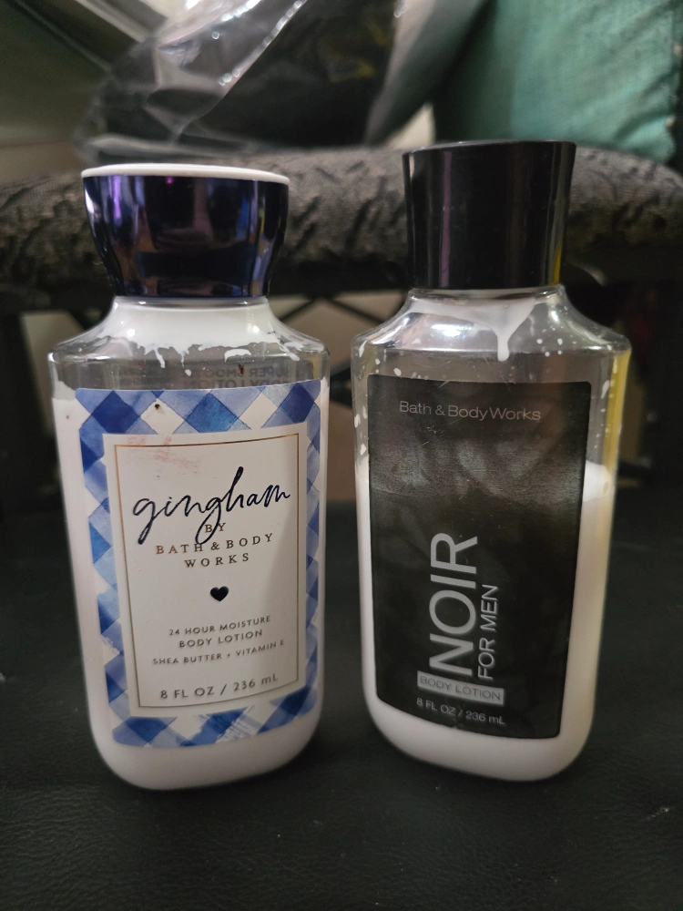 1000+Two 8 fl oz / 236 mL bottles of Bath & Body Works body lotion. One Gingham, one Noir for Men. 24-hour moisture. Shea butter and Vitamin E. these are at least two years old hopefully there can be some use to them.. one is women n one is for men.. has some use to them.. #collectthekarrotschallenge