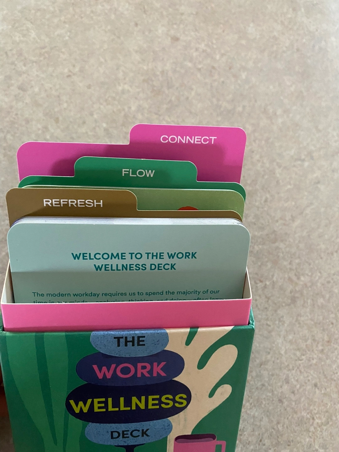 1860 cards offer simple practices for de-stressing and recharging at work. Includes sections on Connect, Flow, and Refresh. Illustrations throughout. New in original box. Chronicle Books publication.