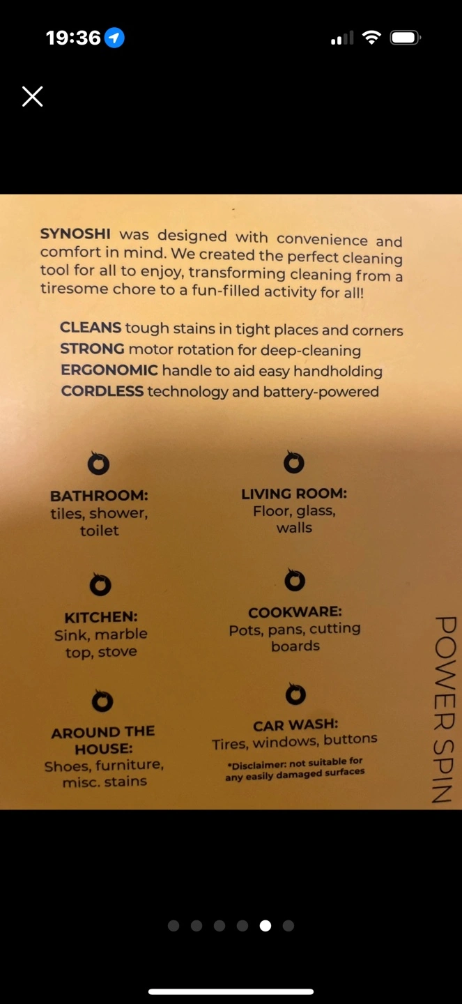 1000+Waterproof and rechargeable. Cleans tough stains in tight places and corners. Strong motor rotation for deep cleaning. Ergonomic handle. Great for bathroom, kitchen, living room, cookware, and around the house. Not suitable for easily damaged surfaces.