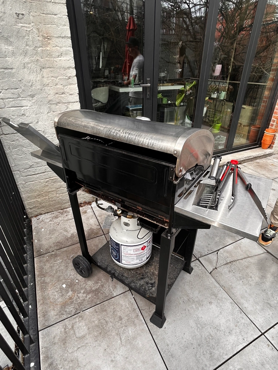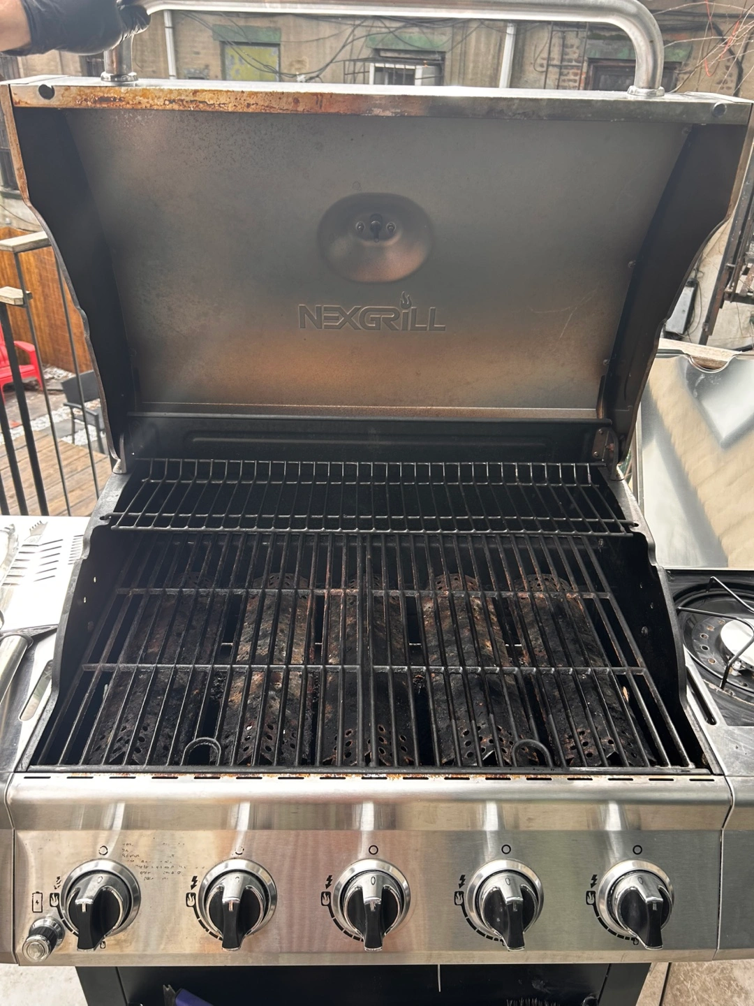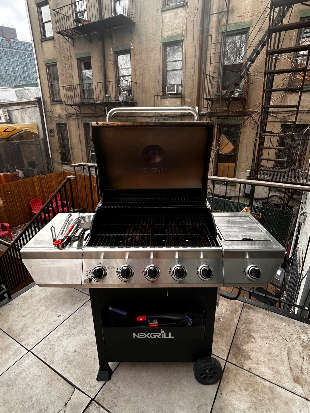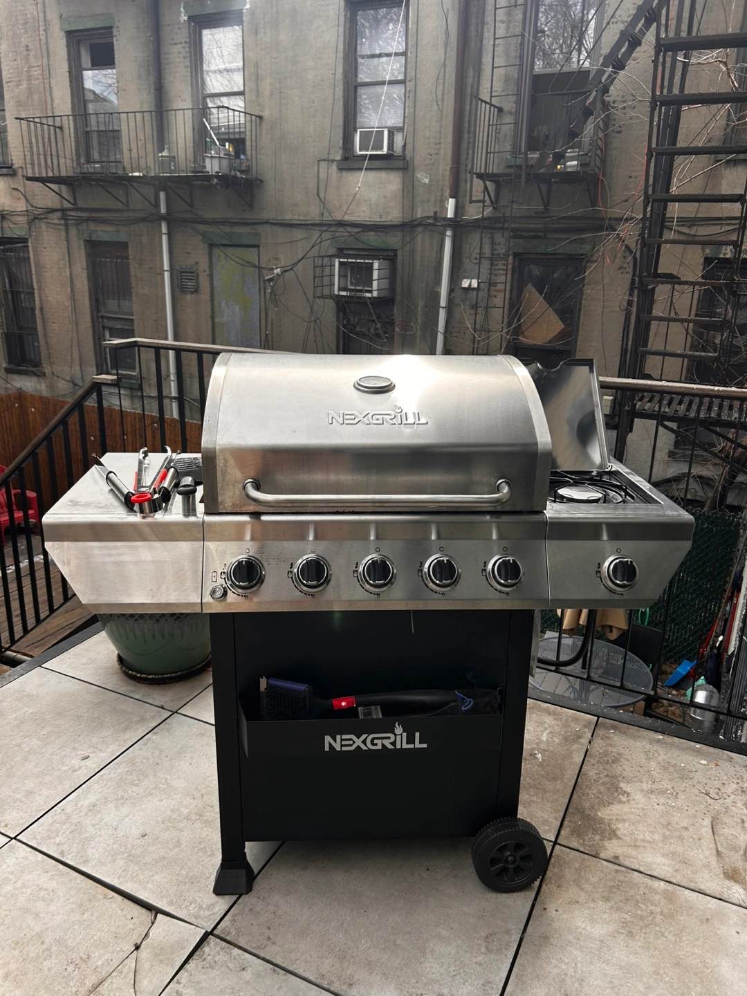 Nexgrill 4-Burner Propane Gas Grill in Black with Stainless Steel Main Lid. ALL pictured utensils and and empty tank included. Great condition. Grill itself goes for $230 on the Home Depot site. ** PICK UP IN SMITHTOWN LONG ISLAND **
