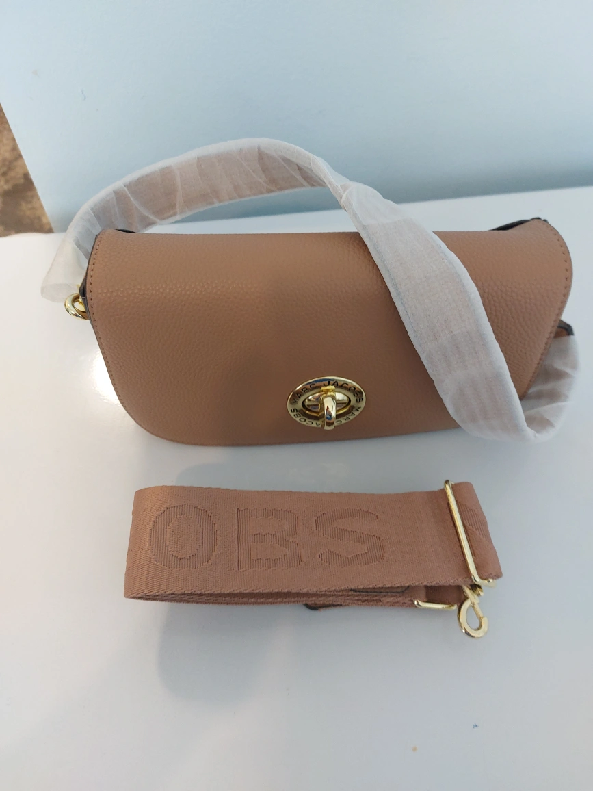 Adorable Marc Jacobs crossbody bag. Light beige colour. Features a unique circular clasp and includes a second, longer strap. Small but functional.