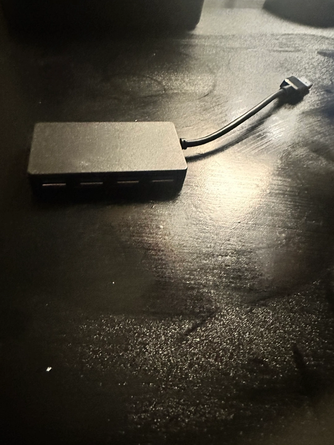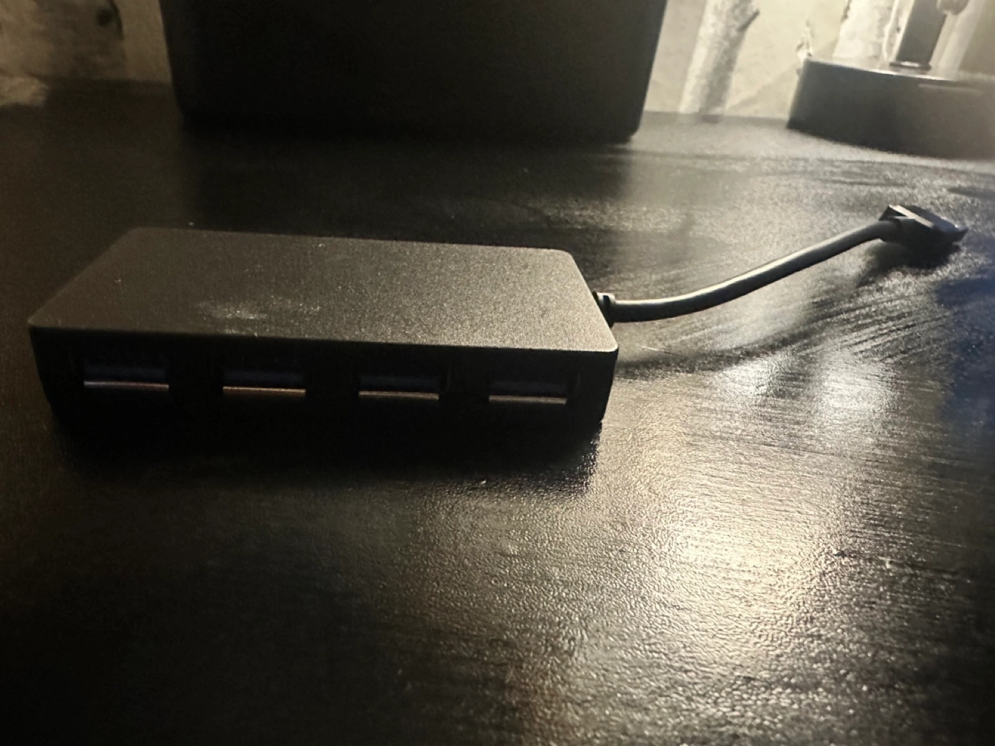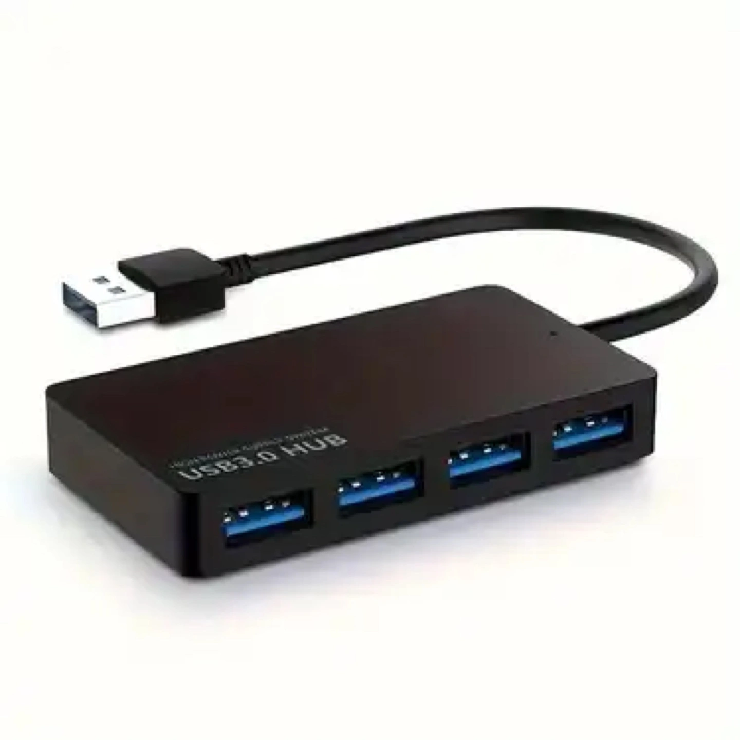 328Black USB 3.0 hub. Four ports. Compact design. Connects via USB-A cable.