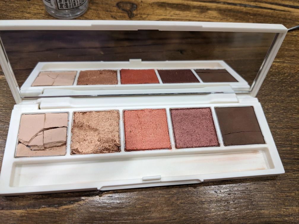 893Gently tested charming mini eyeshadow palette. Five warm-toned shades.Just dropped it yesterday, cracked 3 colors π’ could be yours if you don't mind.