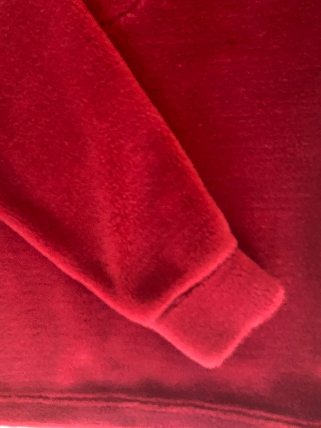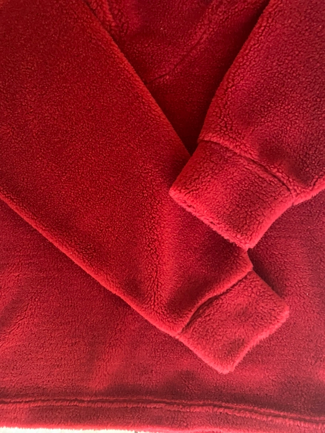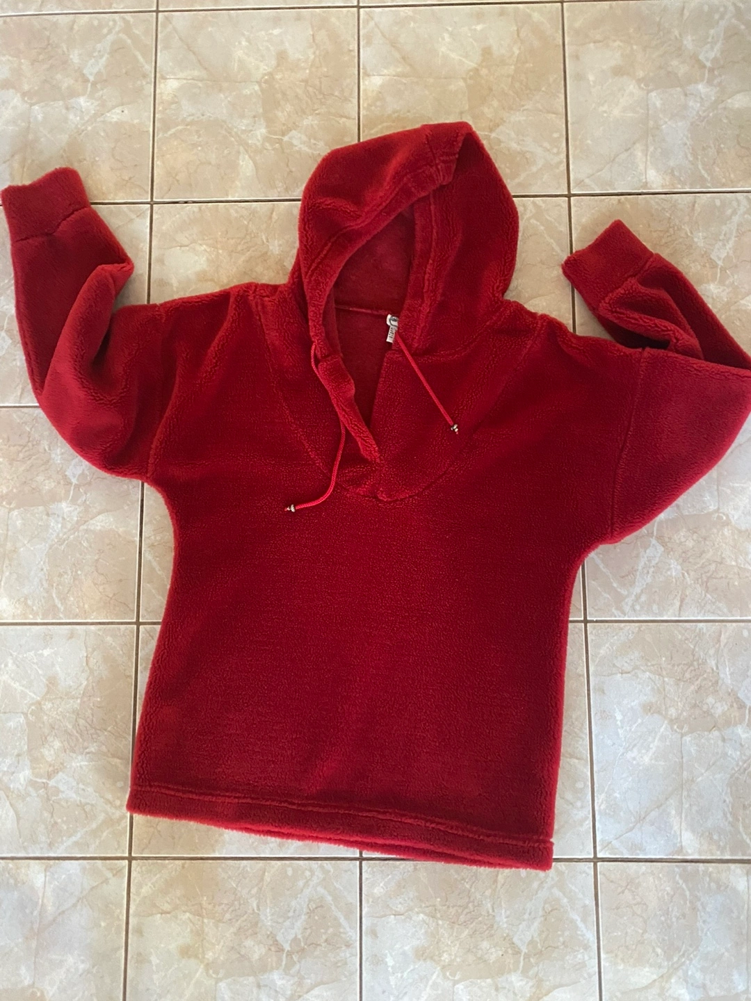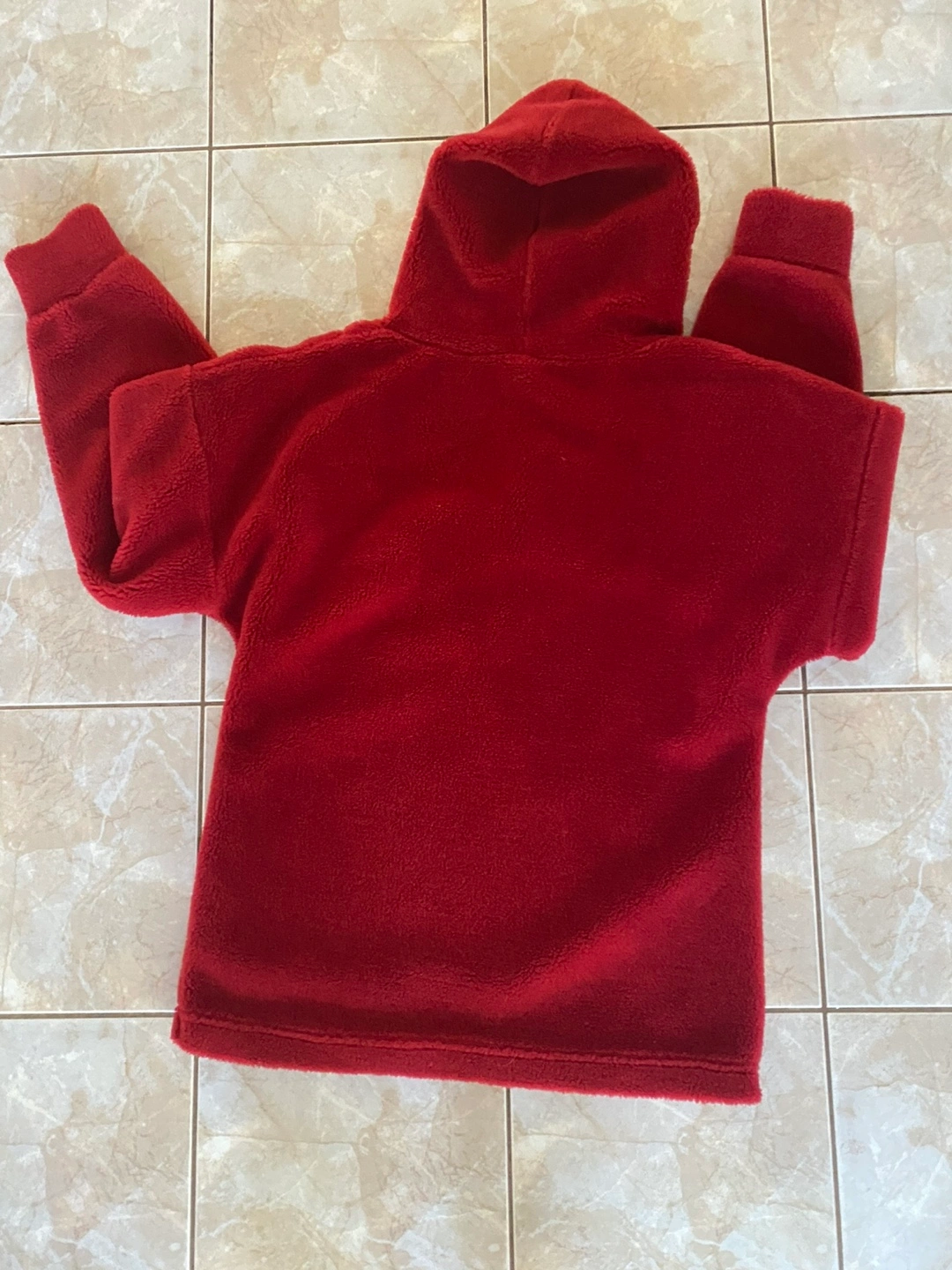 18Red fleece pullover hoodie. Long sleeves, drawstring hood. Soft and cozy.