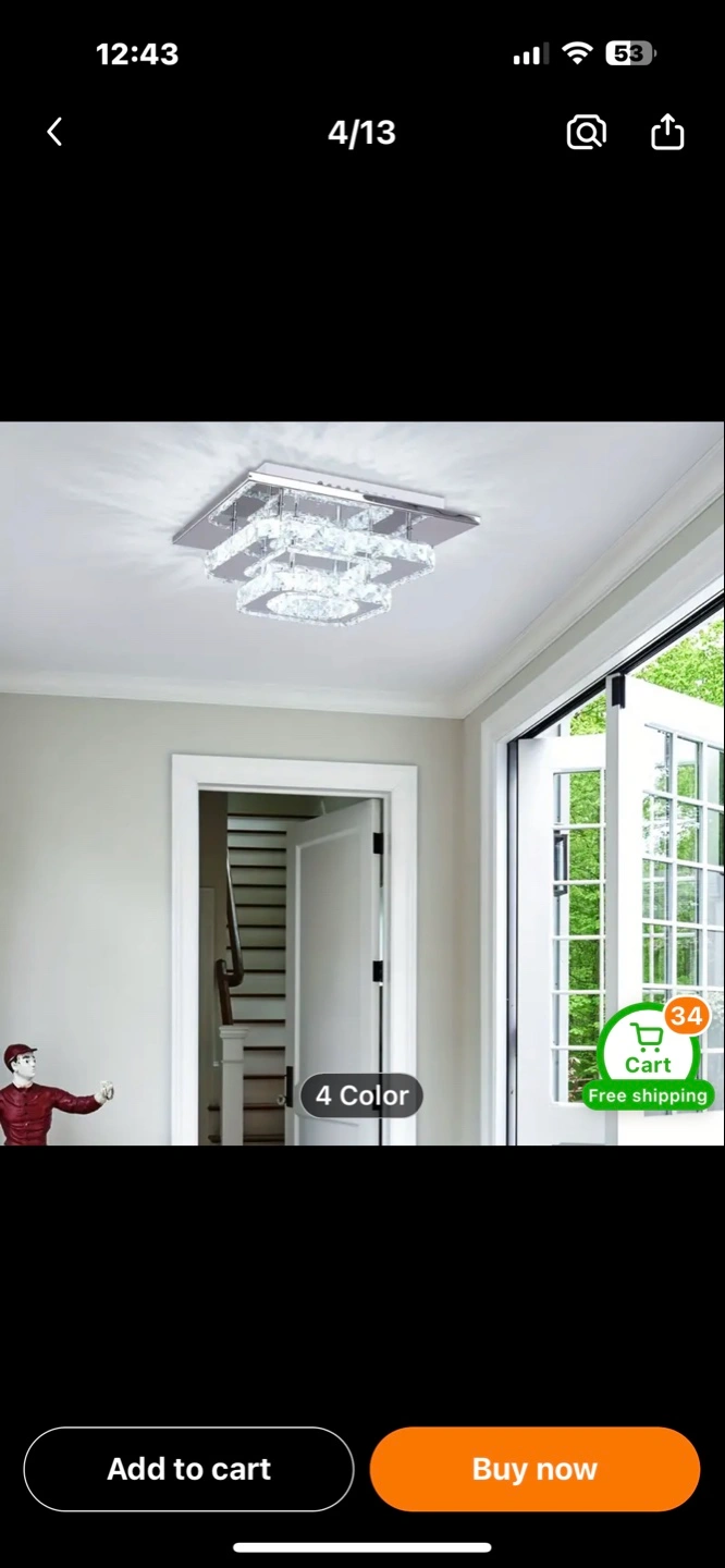 Square crystal ceiling light. Chrome finish. Multiple colors available. Free shipping.