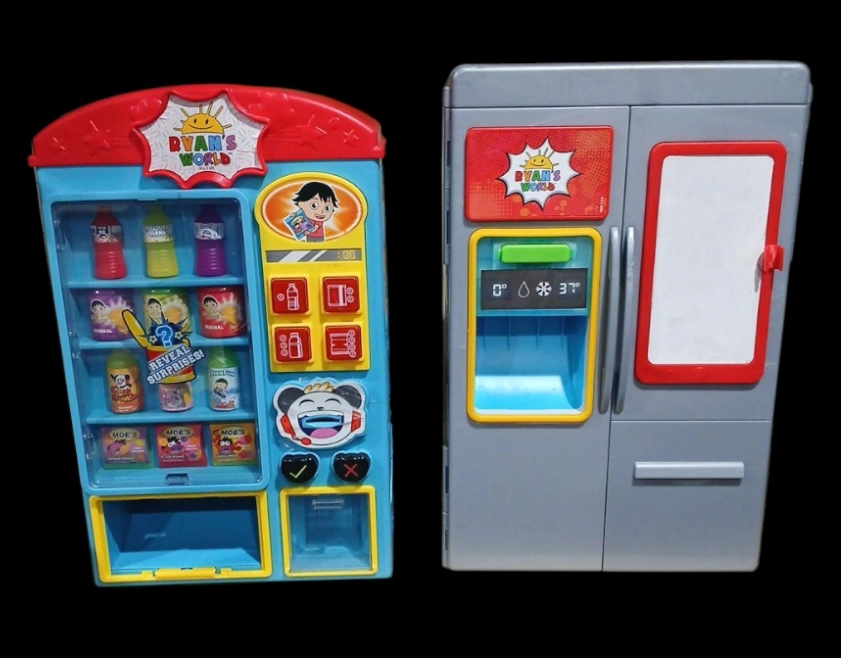 Adorable Ryan's World themed playset. Includes a vending machine with buttons and a refrigerator with a whiteboard door. Perfect for imaginative play.
