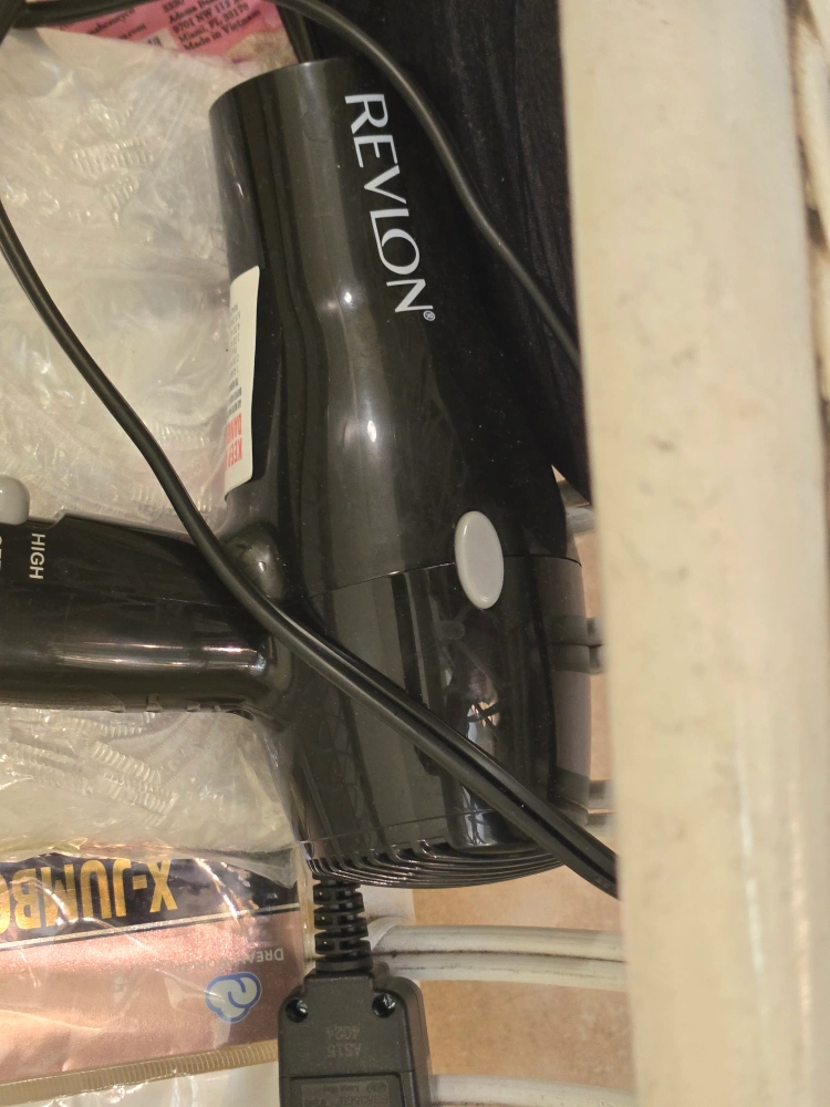 74Black handheld hair dryer. Compact design. Includes cord. High heat setting.
