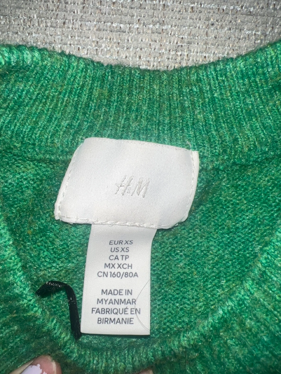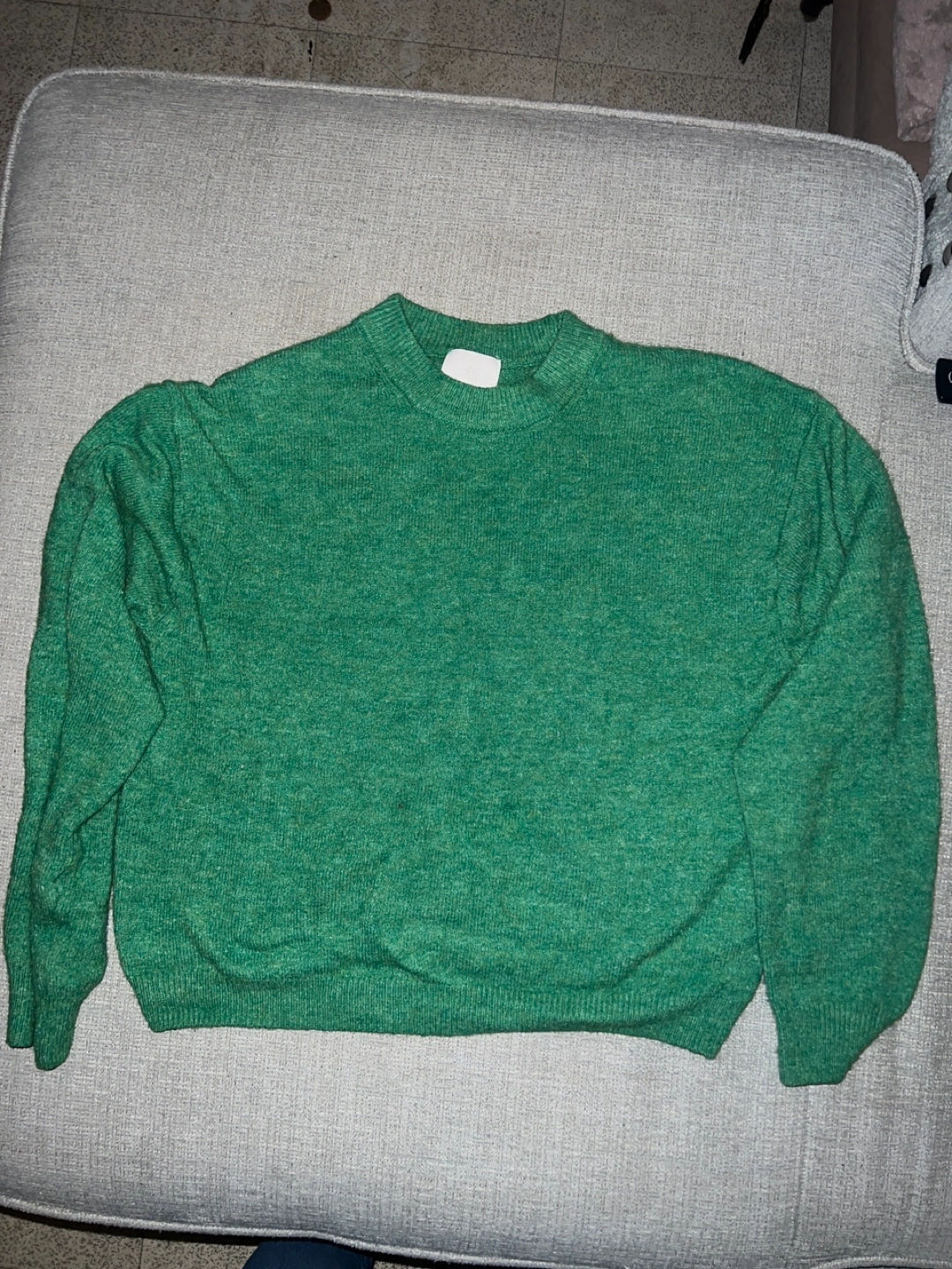 Women's green knit sweater. Size XS. Soft material. Long sleeves. Crew neck. Relaxed fit.