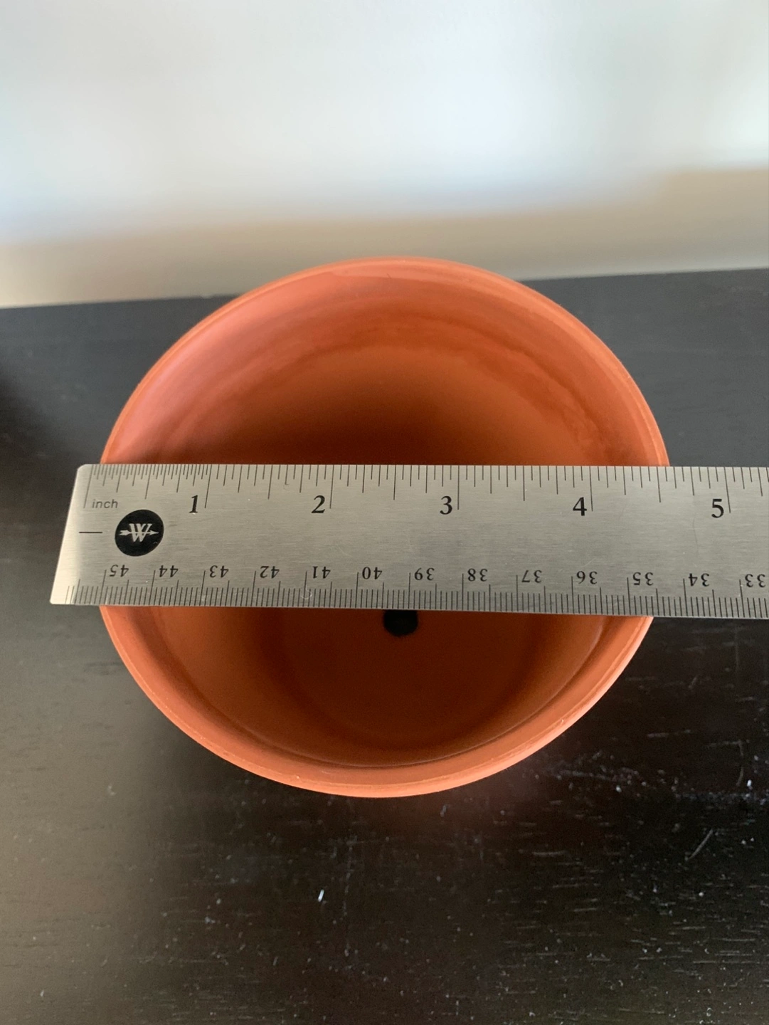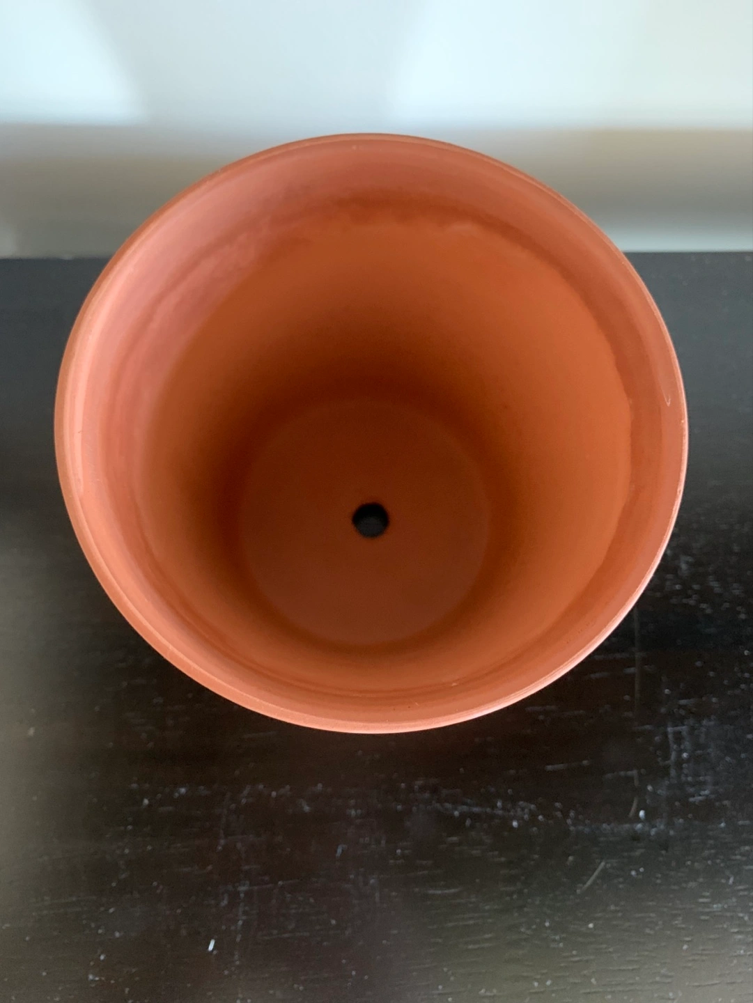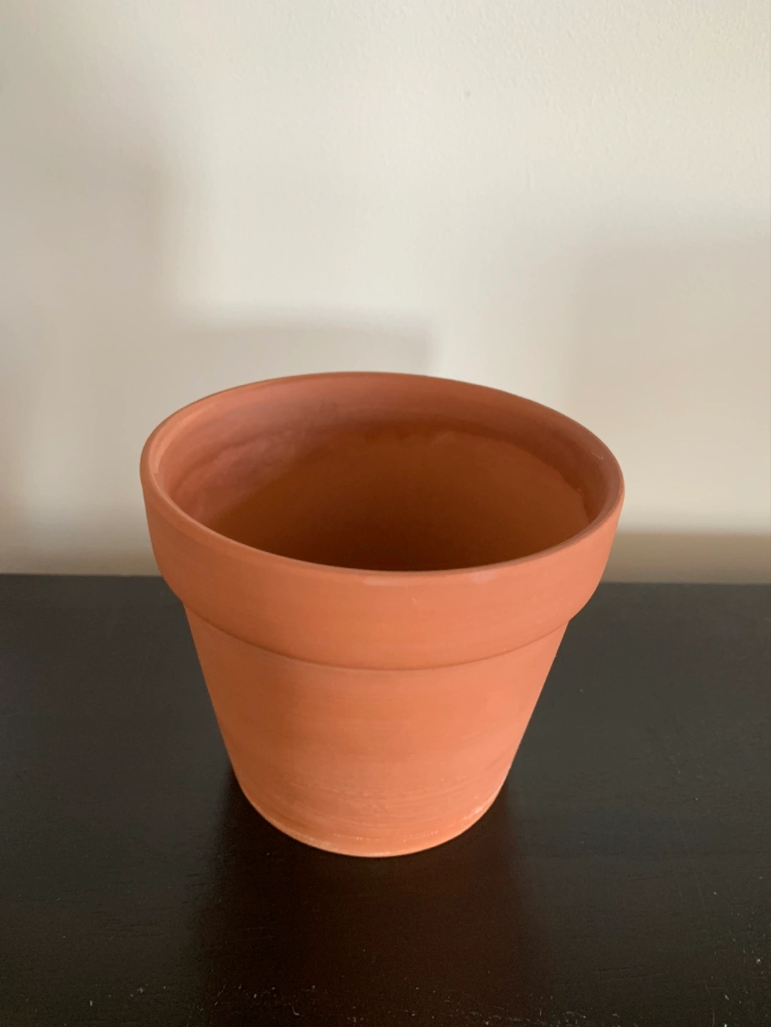 395Small terracotta pot. Drainage hole. Great for small plants or succulents. Simple and classic design. Diameter is 4,5โ approx.