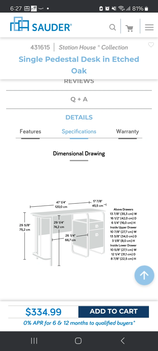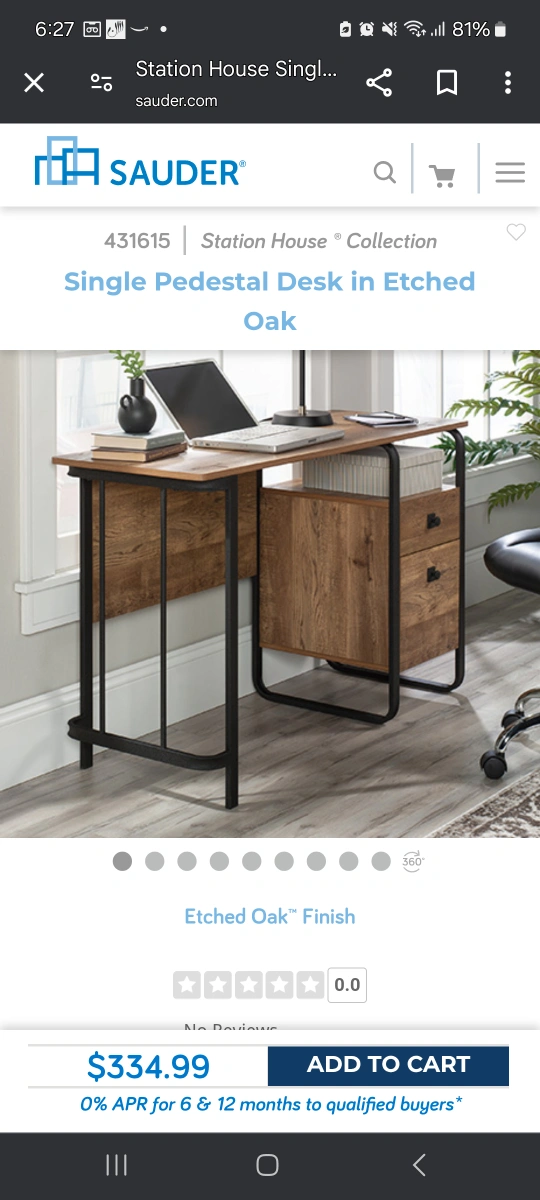 Sauder Station House Single Pedestal Desk in Etched Oak
