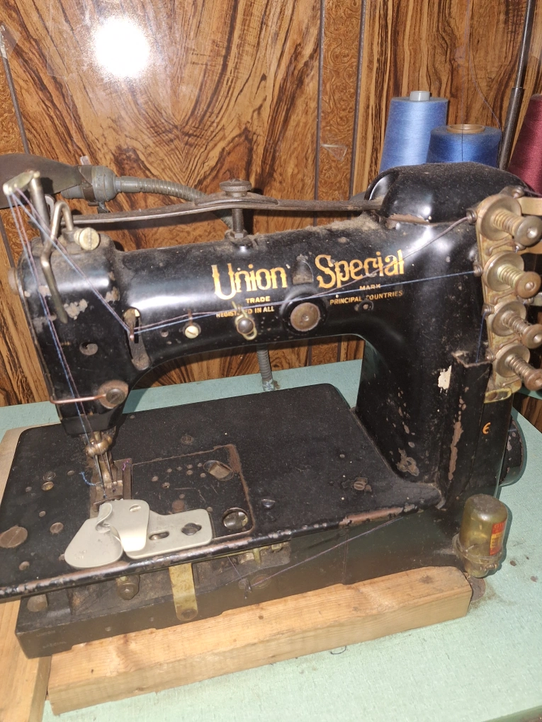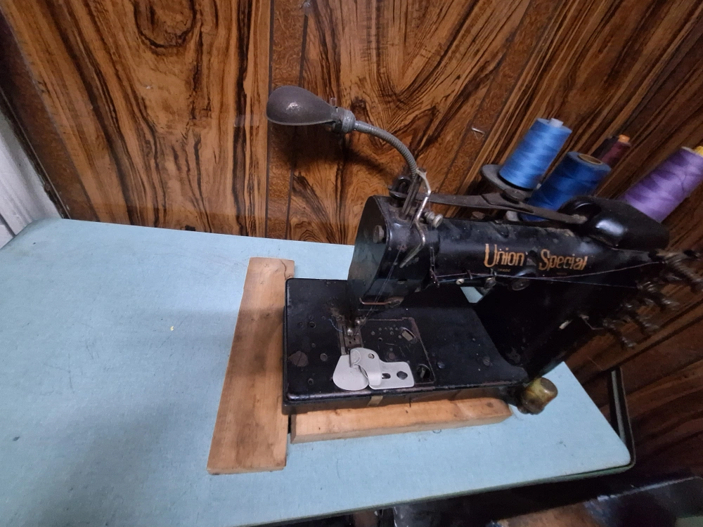 37Hope all is well. Antique Union Special sewing machine. Includes light. Come with table as seen in photo. Needs some TLC. Sold as-is.