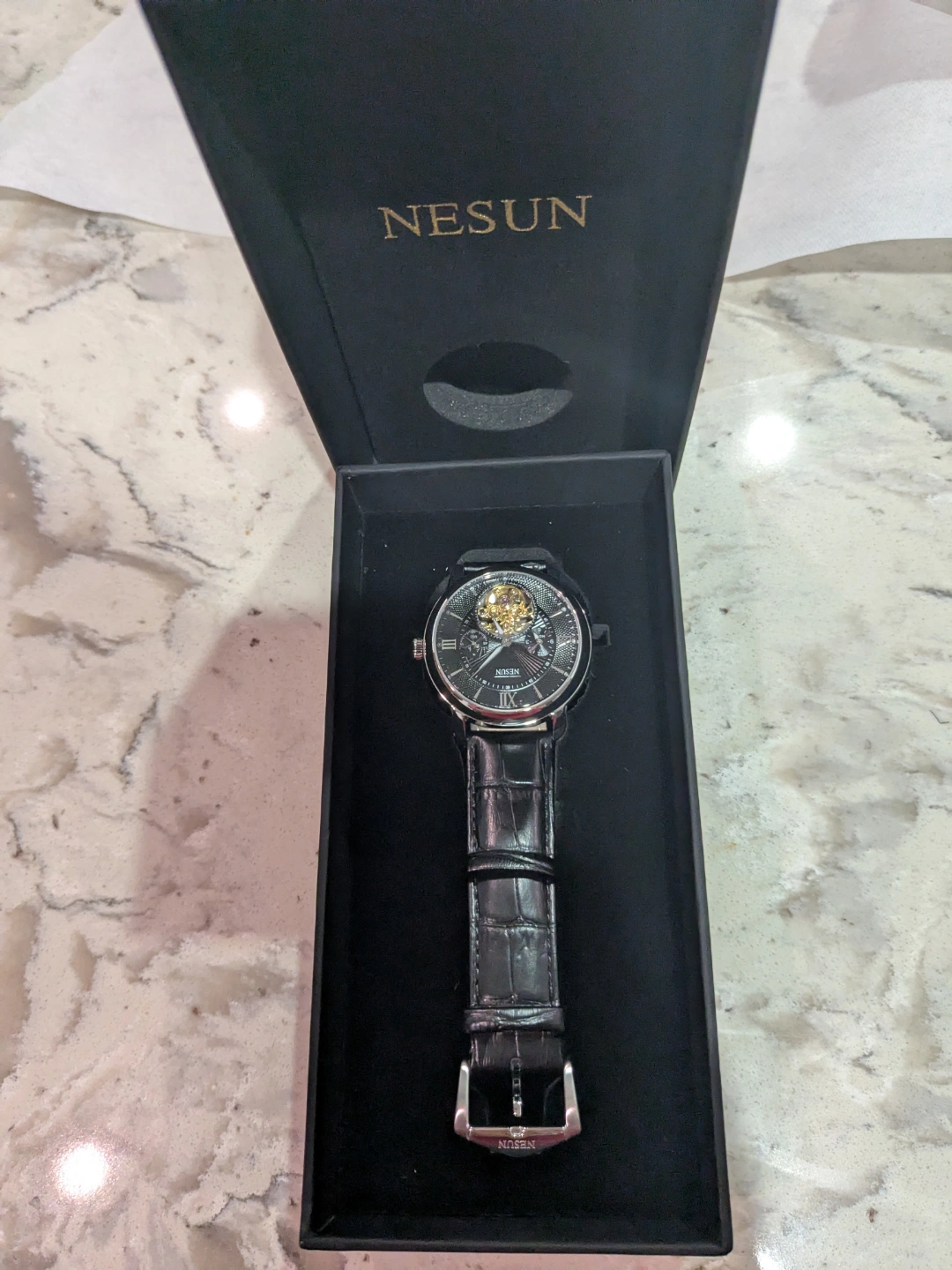 Men's automatic watch. Black leather skeleton luxury brand waterproof Comes in original box.