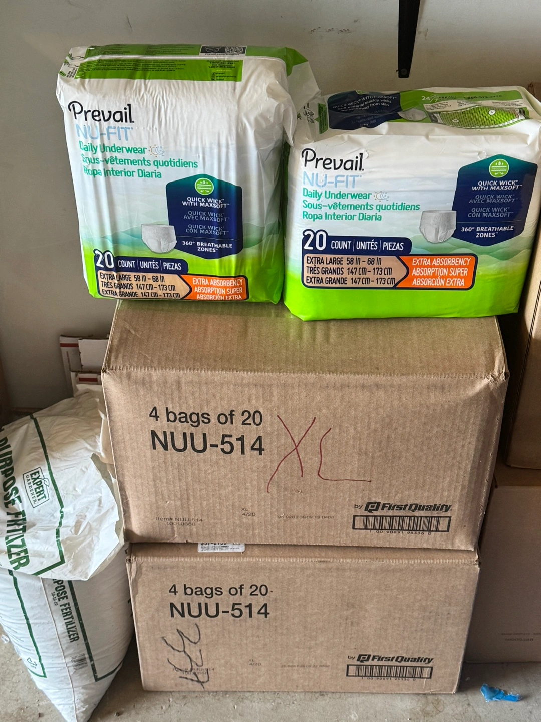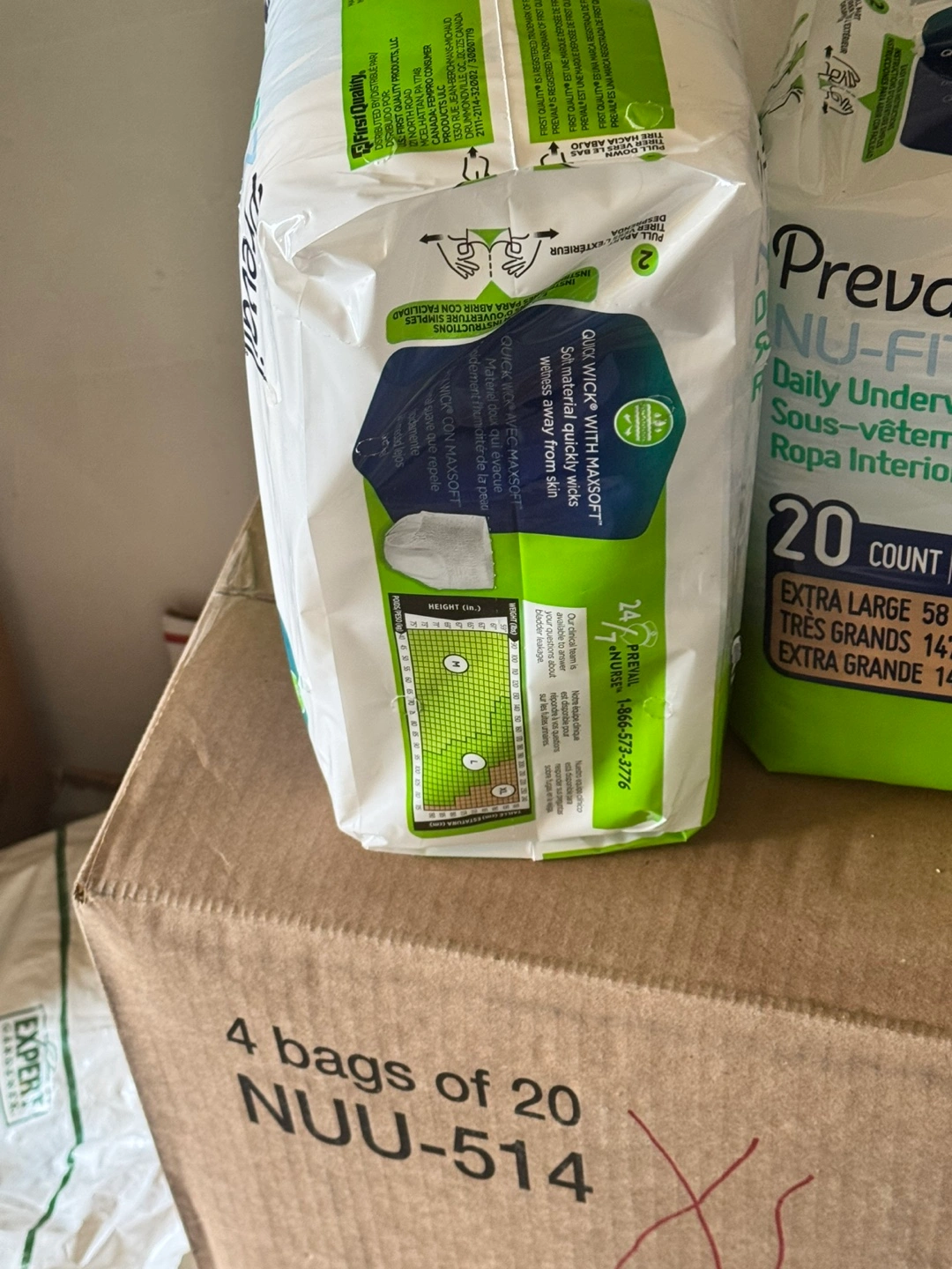 103Bulk pack of adult underwear. Extra large. 20 count per bag. Quick Wick with MaxSoft. First Quality. Available for local pickup by Schaumburg and Barrington Road in Schaumburg IL 60194 or shipping to your doorstep for one low price with tracking included for free. Comes from a virus free, smoke free and pet free home.