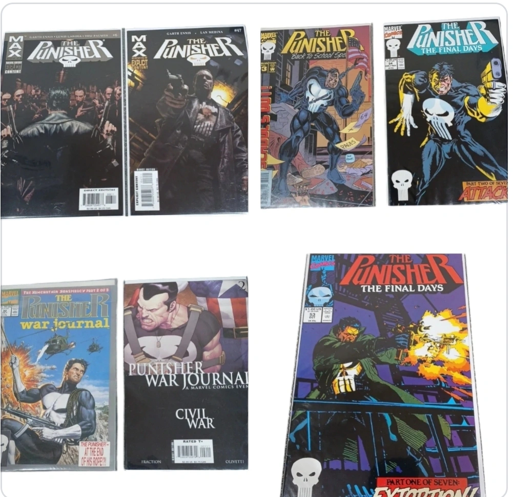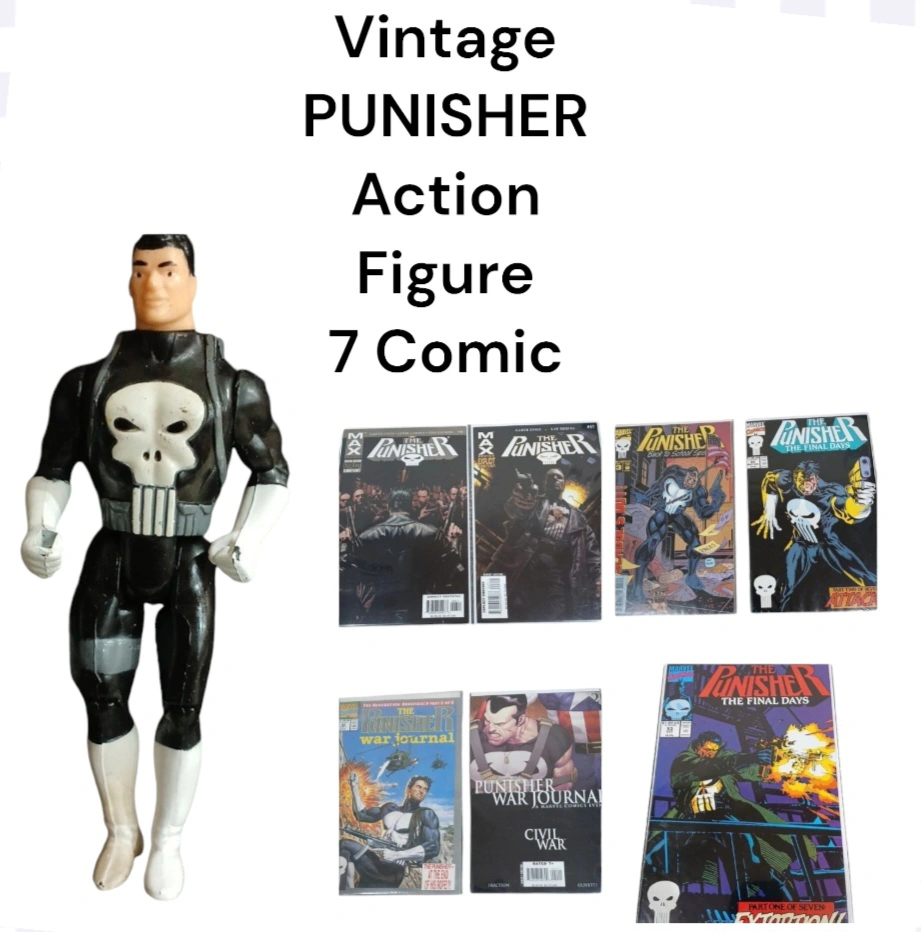 Collection includes a vintage Punisher action figure and seven Marvel Comics. Comic titles include: The Punisher War Journal, The Punisher: The Final Days, and The Punisher: Great for collectors! * Trade/$ell