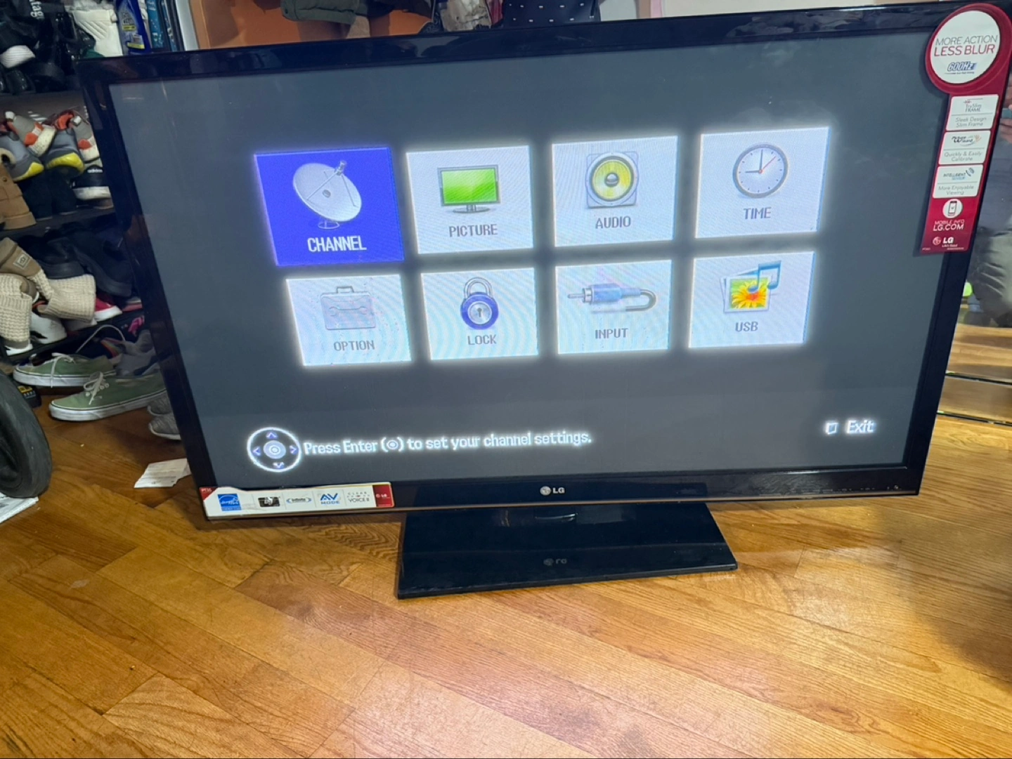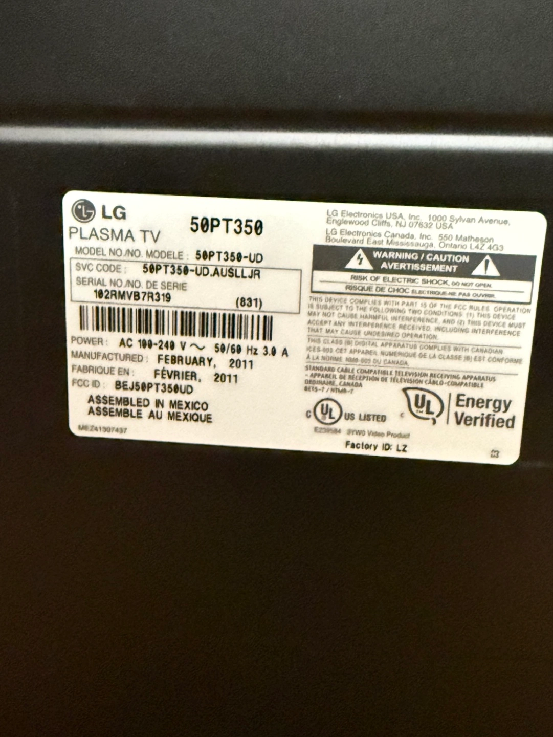 16550-inch LG plasma TV. Model number 50PT350. Various inputs including USB. Good condition.