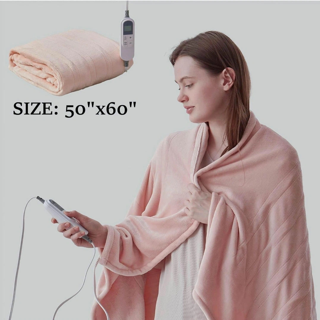85Soft plush pink electric throw blanket. Features a convenient control. Measures 50"x60". Perfect for staying warm.