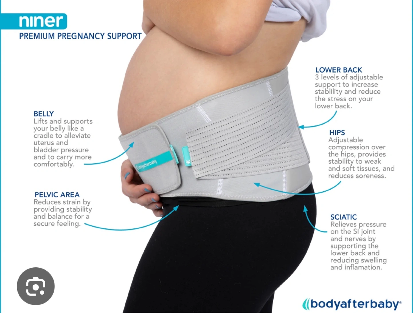 Gray pregnancy support belt. Provides lower back, hip, and pelvic support. Adjustable straps. Lightly used.