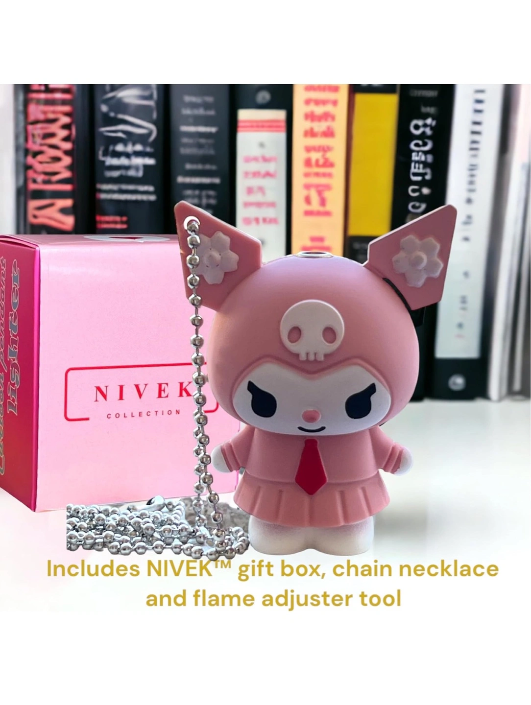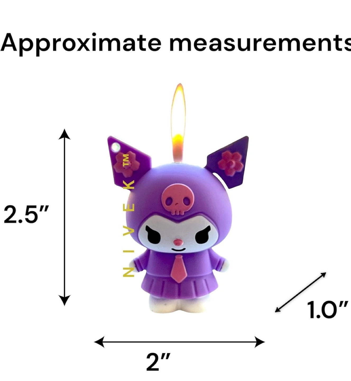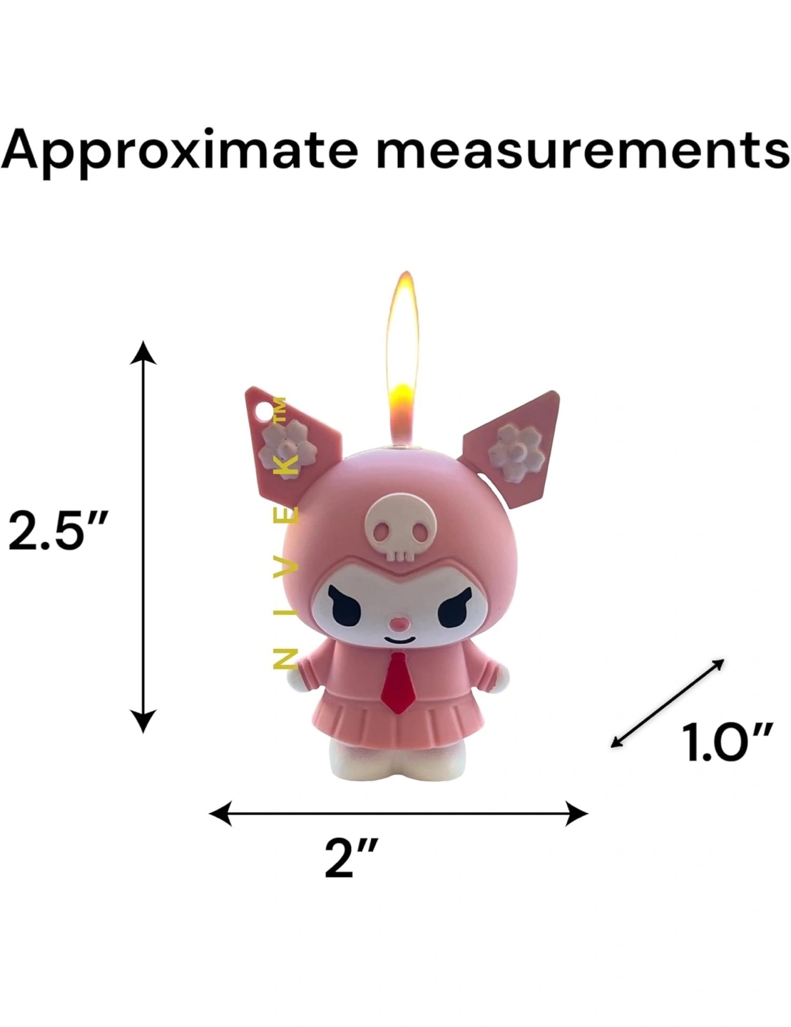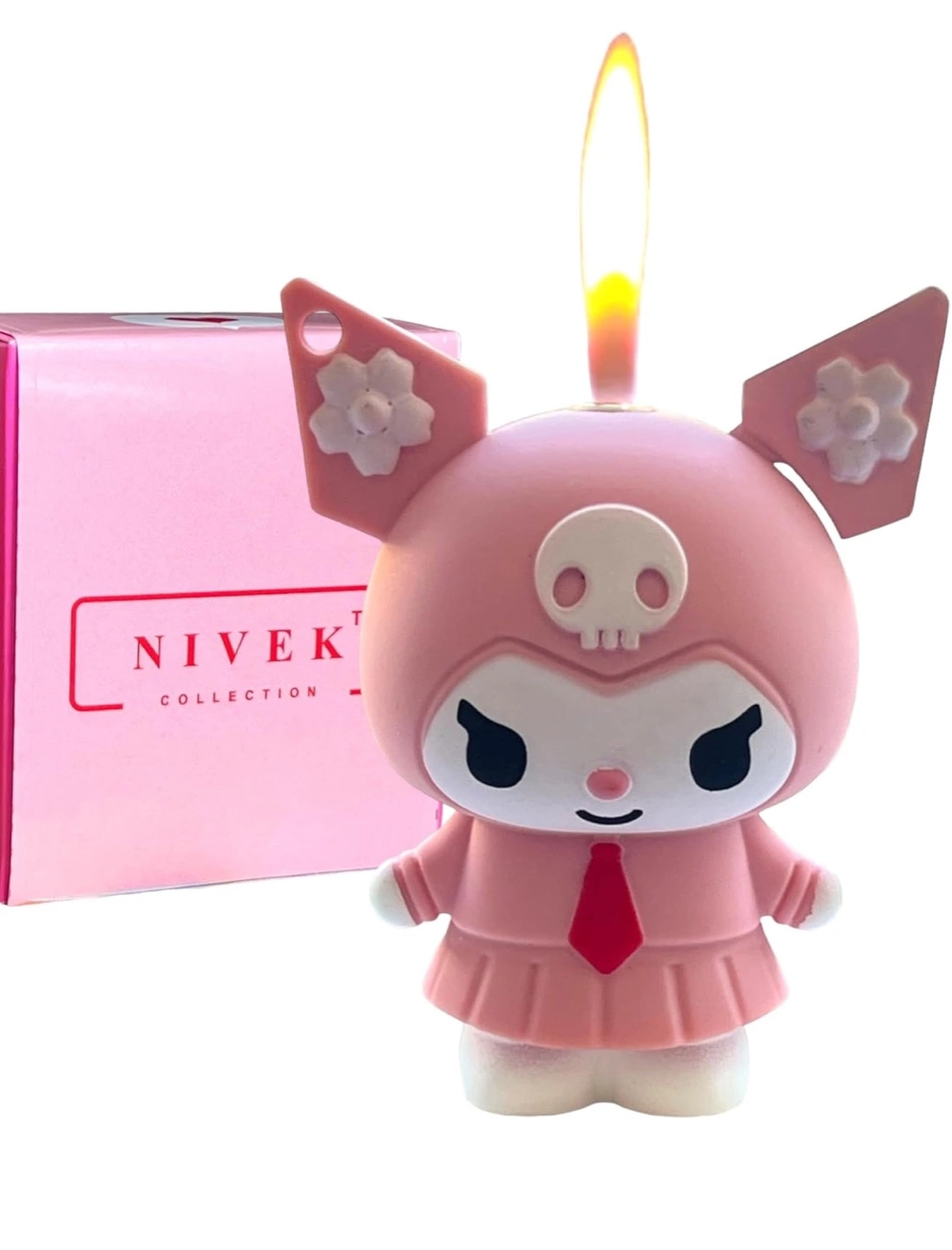 Adorable purple Kuromi lighter. Refillable with butane. Includes gift box and chain. Flame adjuster tool included. Approximately 2.5" tall. 1 pink 1 purple & 3 cans of butane fuel for 27$