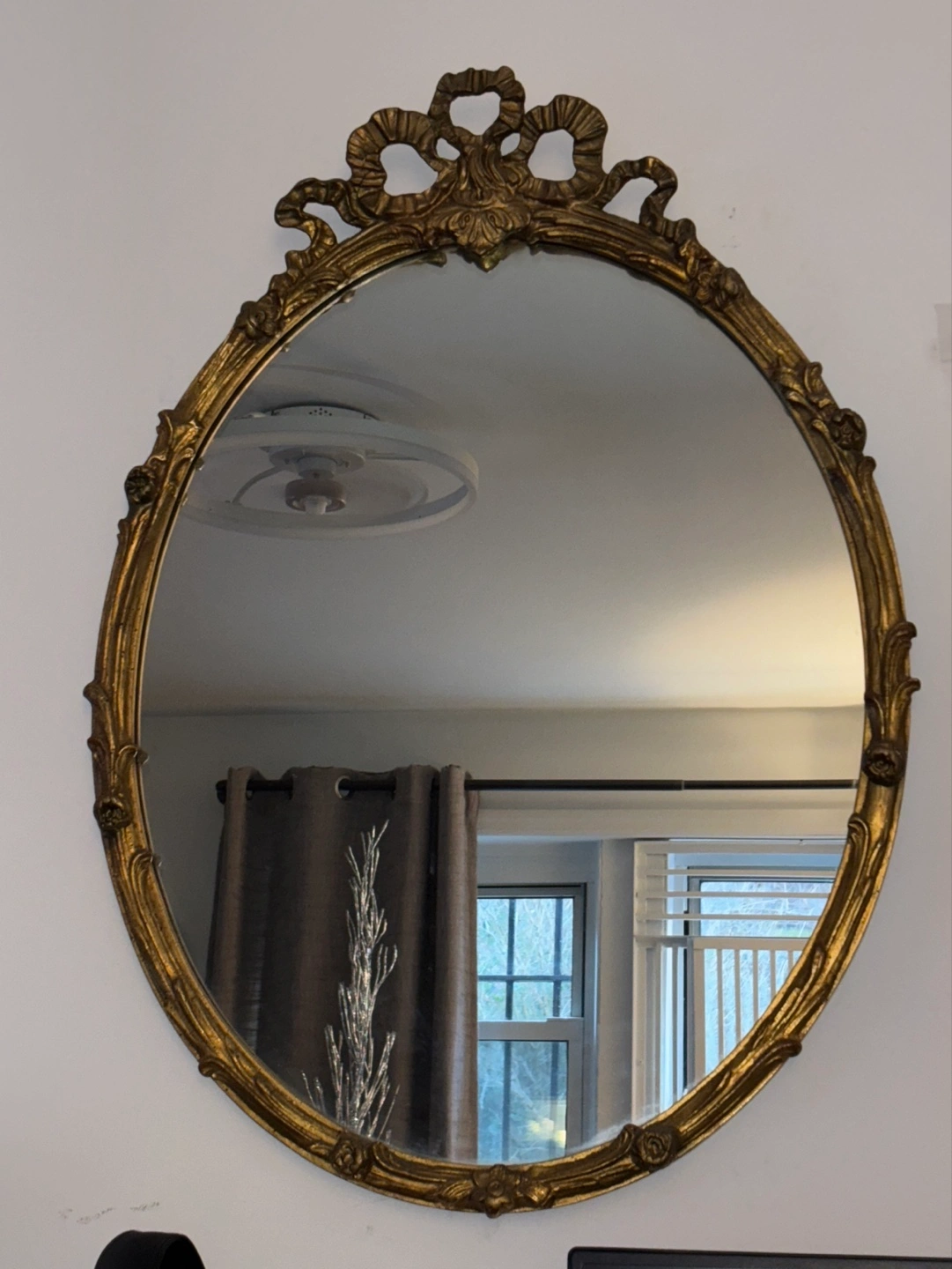 291Beautiful antique vintage gold oval mirror. Intricate frame. Perfect for adding elegance to any room.