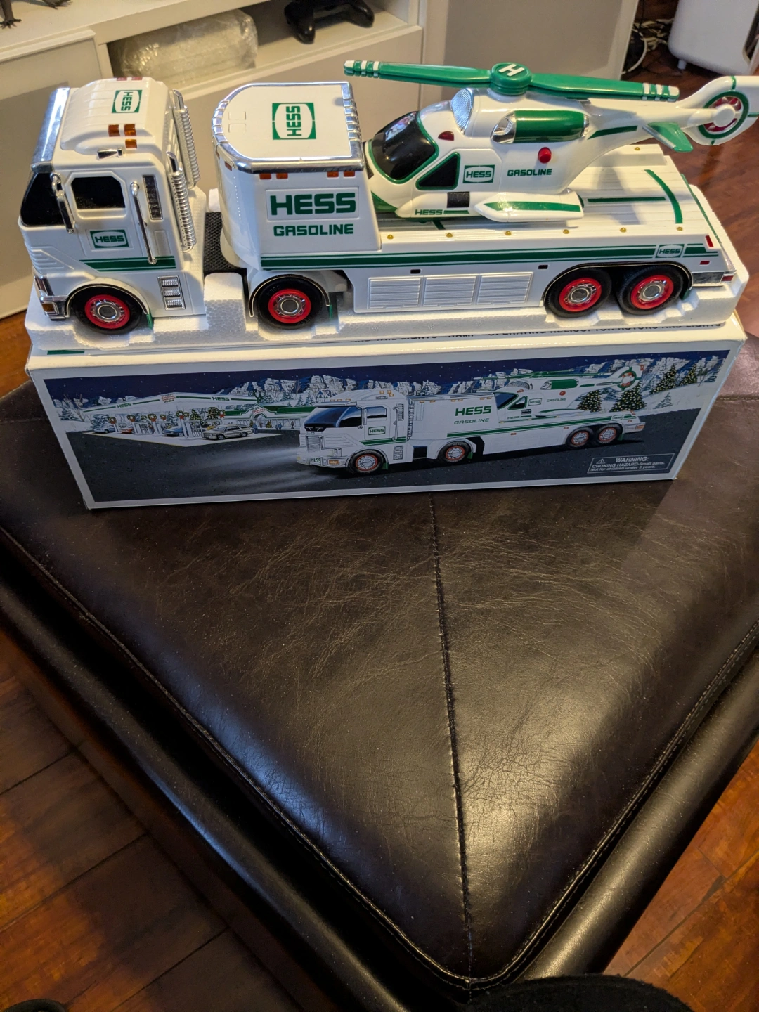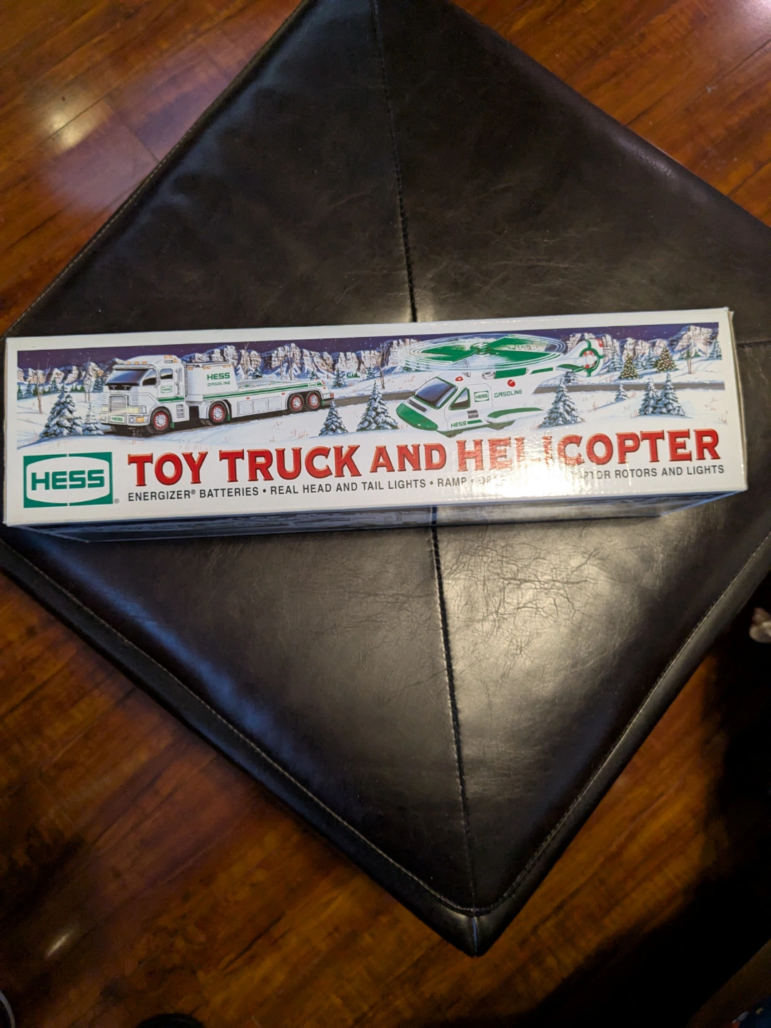 Vintage Hess toy truck and helicopter. Features lights and sounds. Comes in original box. Great condition, never used