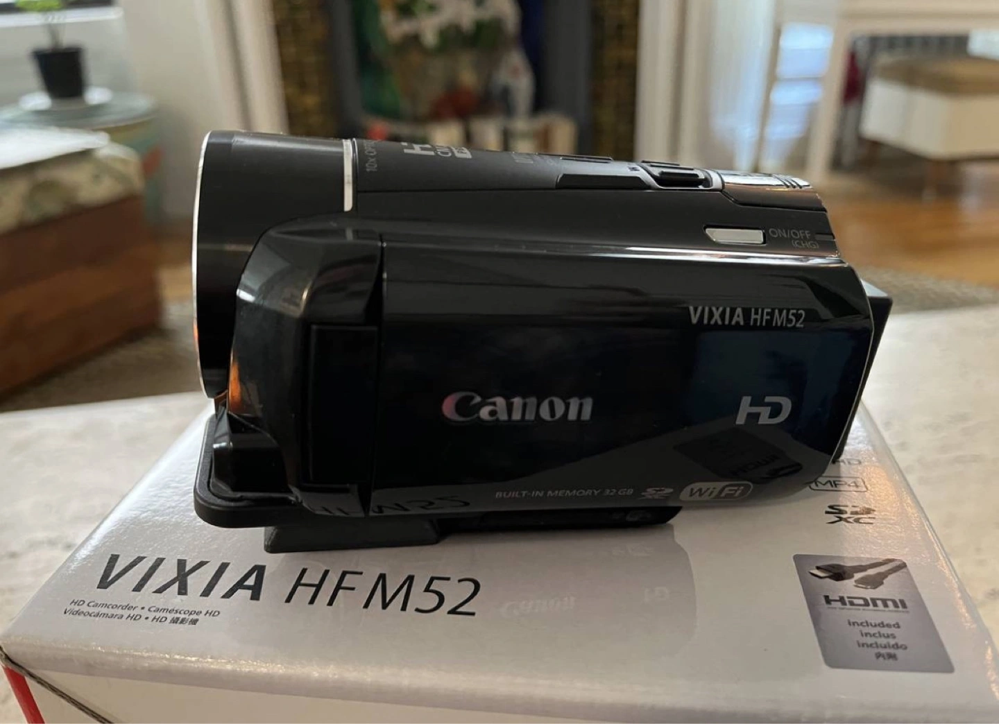240Black Canon Vixia HF M52 HD camcorder. Built-in memory. WiFi enabled. Includes carrying case. Excellent condition.