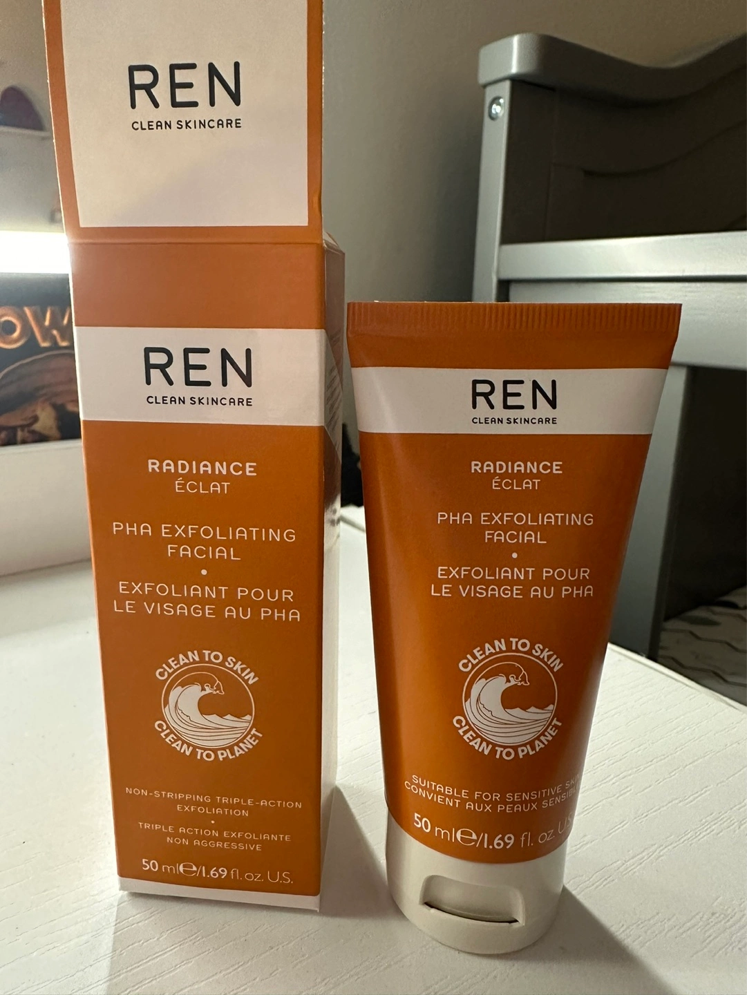 New REN Clean Skincare exfoliating facial. 50ml tube. Suitable for sensitive skin. Triple-action exfoliation.