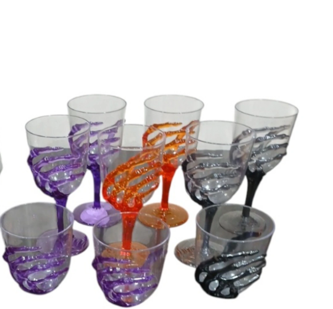 Plastic wine glasses. Skeleton hand design. Multiple colors. Plastic Serving Trays .