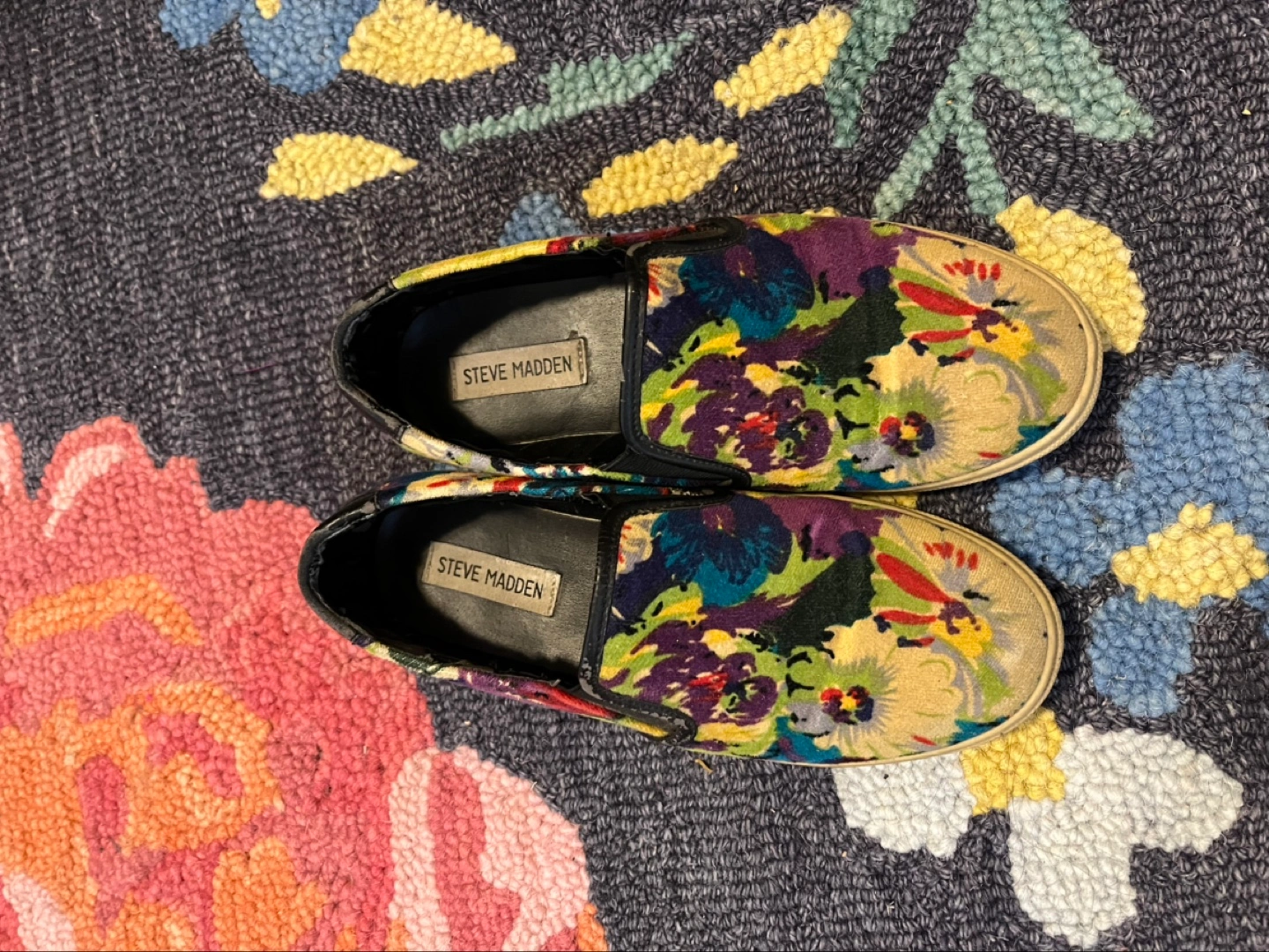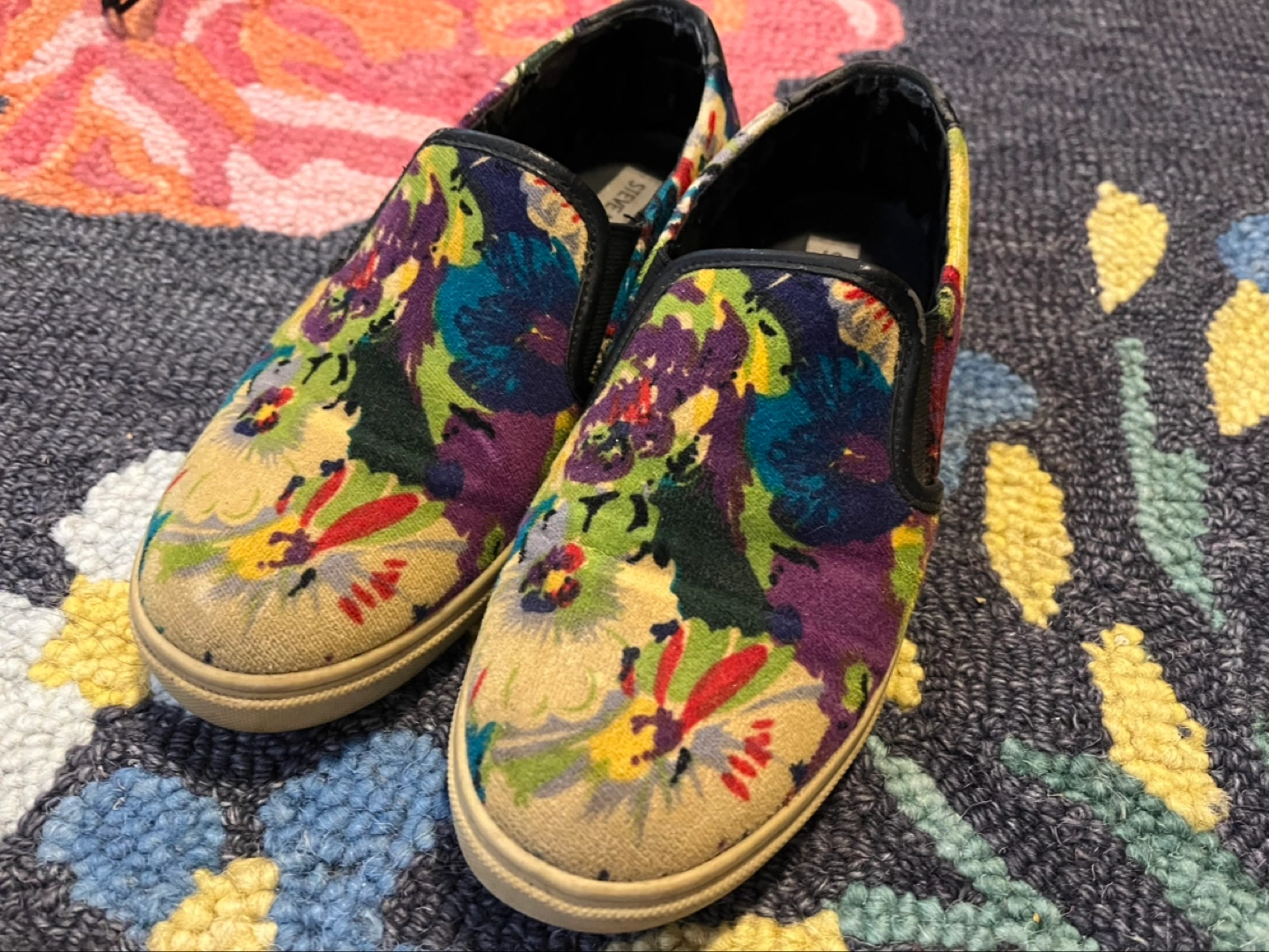 240Women's slip-on sneakers. Floral print. Comfortable casual shoes.