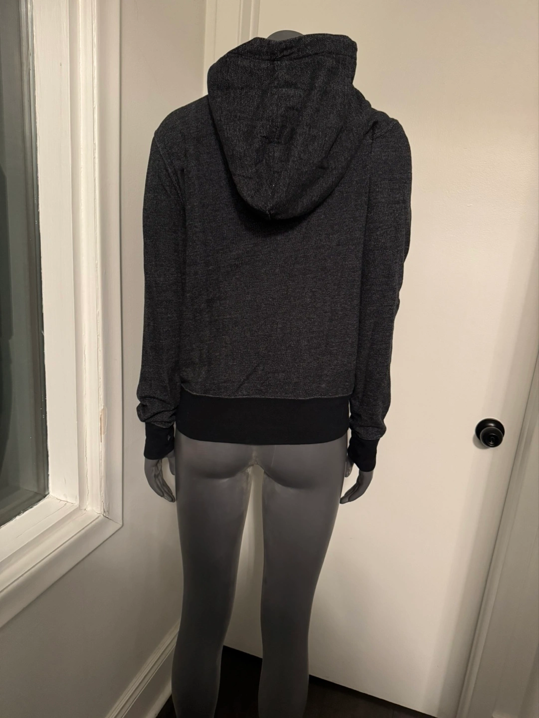 Women's Roots hoodie. Grey heather colour. Features a black Roots beaver logo. Long sleeves, fitted. Great for layering.