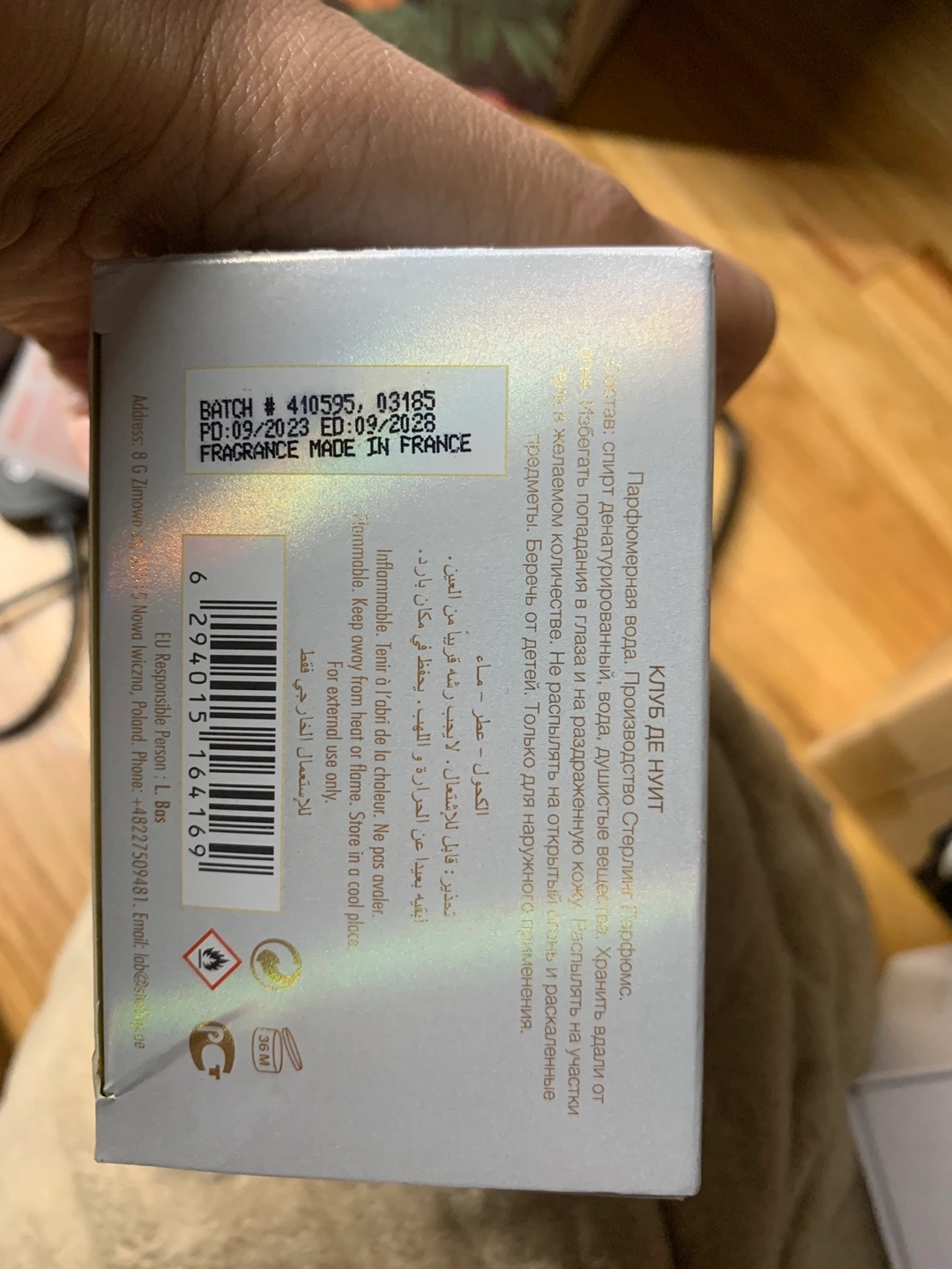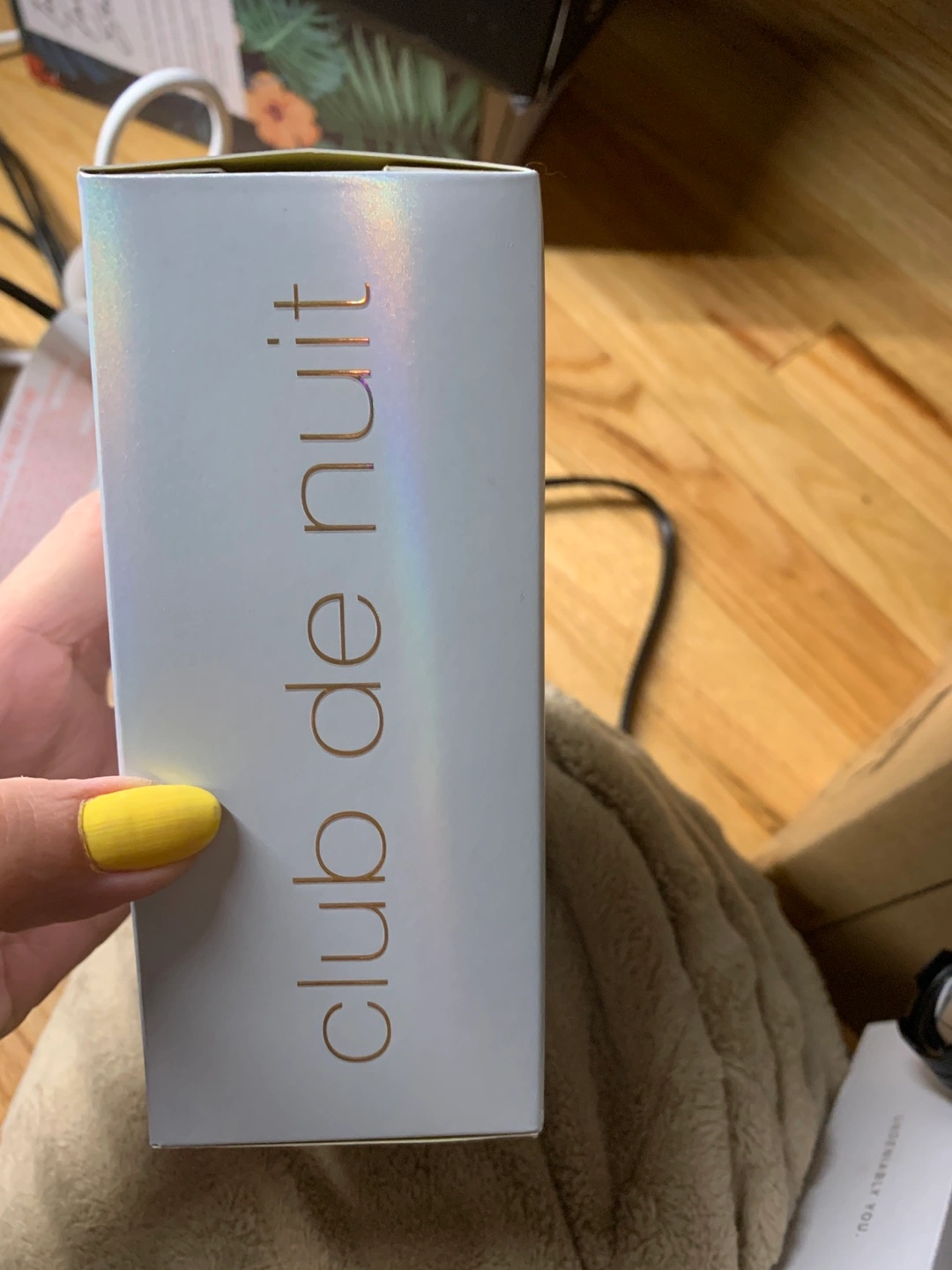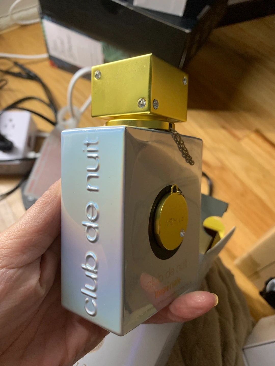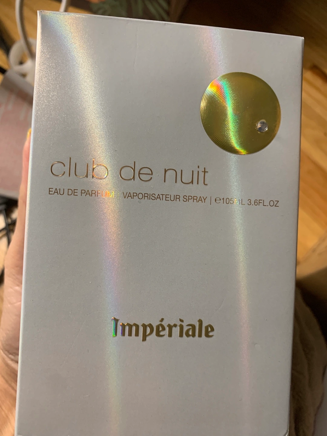 New in box. Eau de Parfum spray. 3.6 fl oz. Gold and iridescent bottle. Unique design.